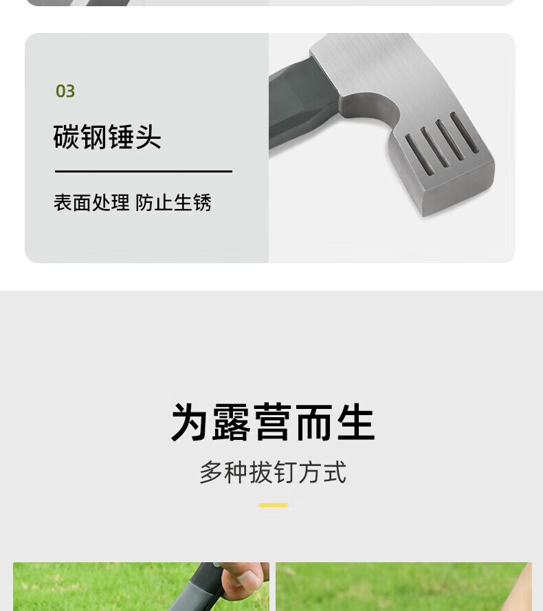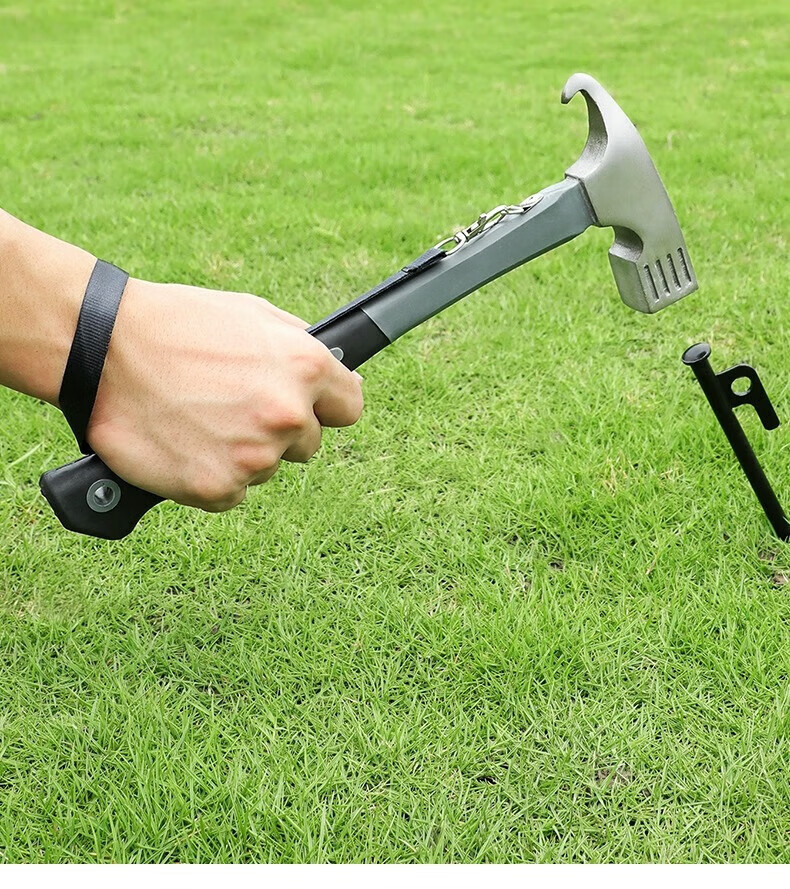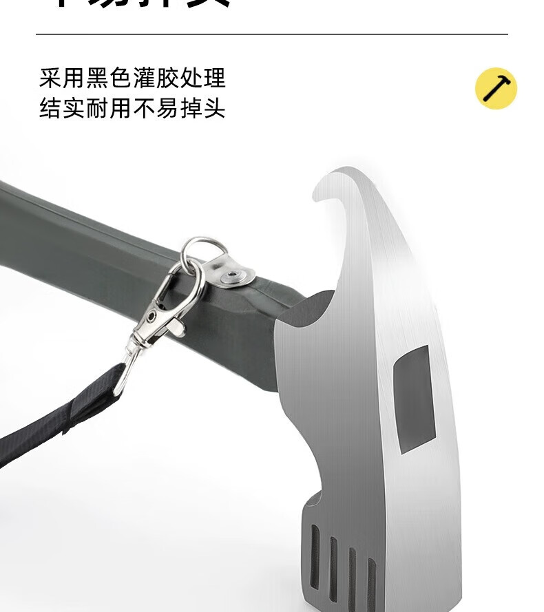 oein野营铁锤户外地钉锤多功能锤鹰嘴锤碳钢篷天幕拔钉锤帐篷露营工具 灰色【野营鹰嘴锤+防脱绳】