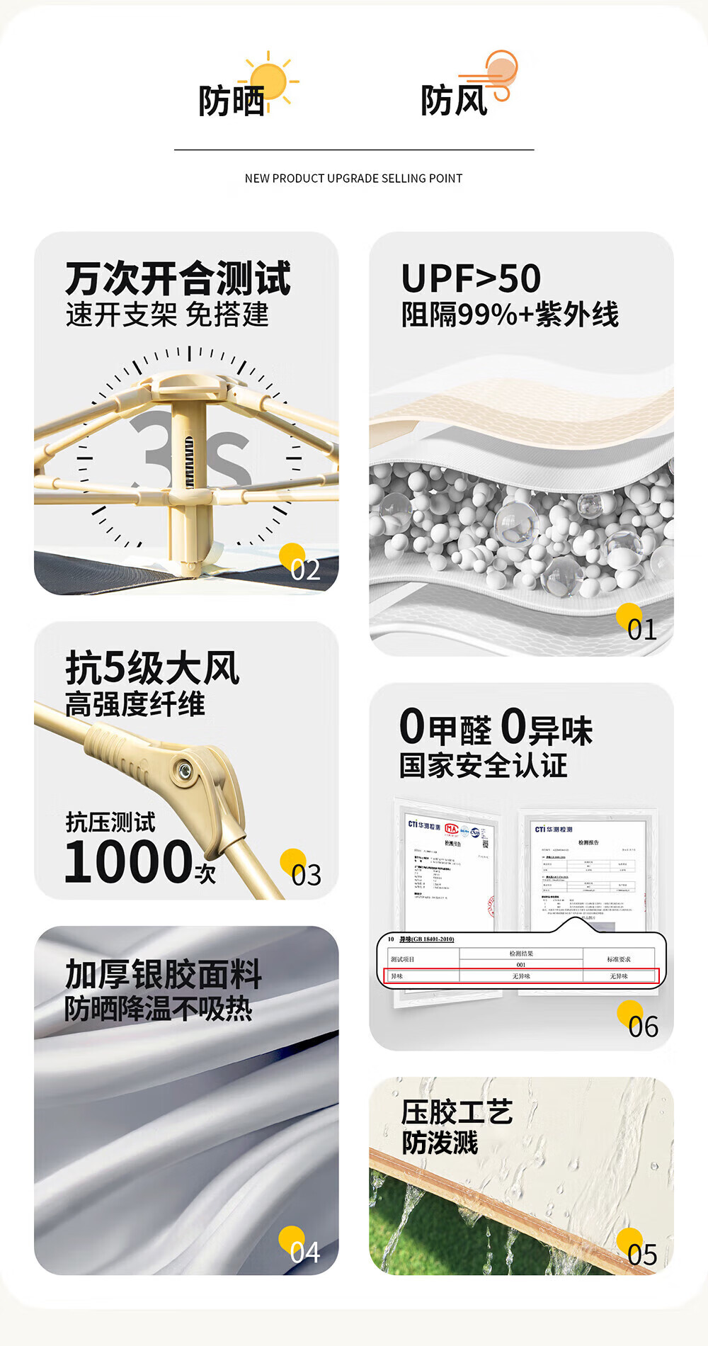野徒者帐篷户外露营装备全套全自动天幕二合一速开便捷防晒沙滩野营 3-5人加厚防晒帐篷 防蚊纱窗/落地大窗