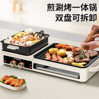 野徒者电烧烤炉家用无烟烤肉机室内烧烤架电烤盘炉子烤串多功能电烤锅 烤涮一体【小烤盘+烤网】 新网红款电烤炉