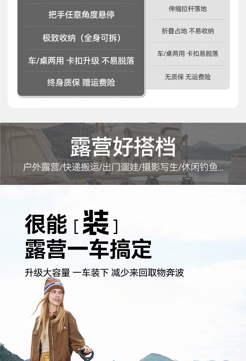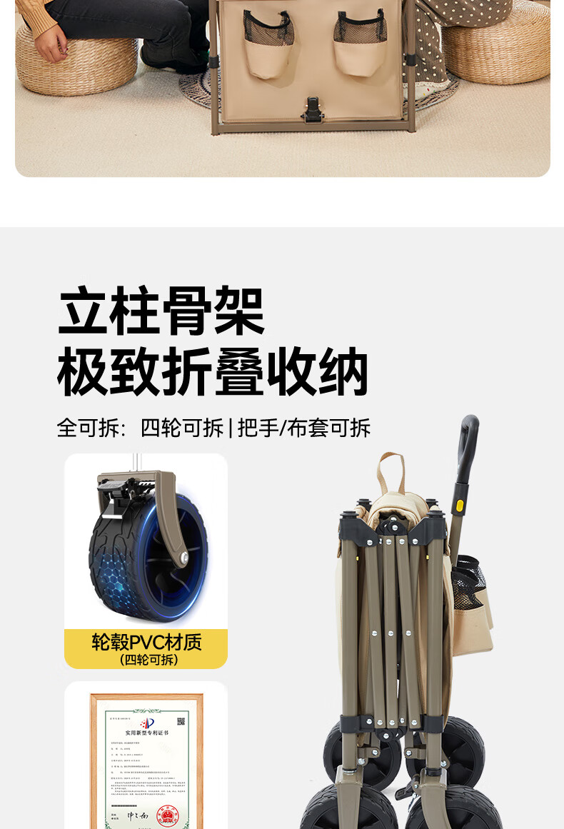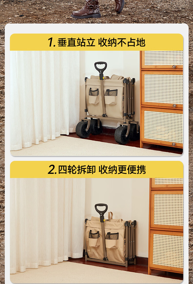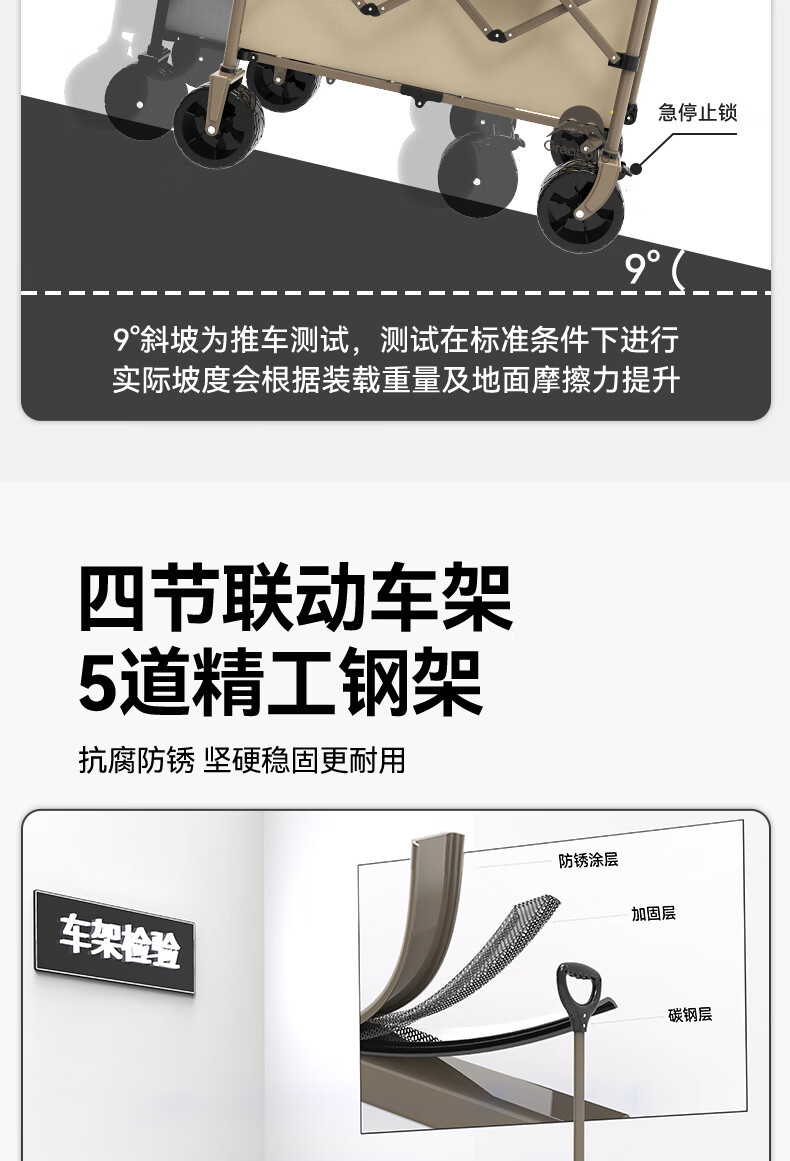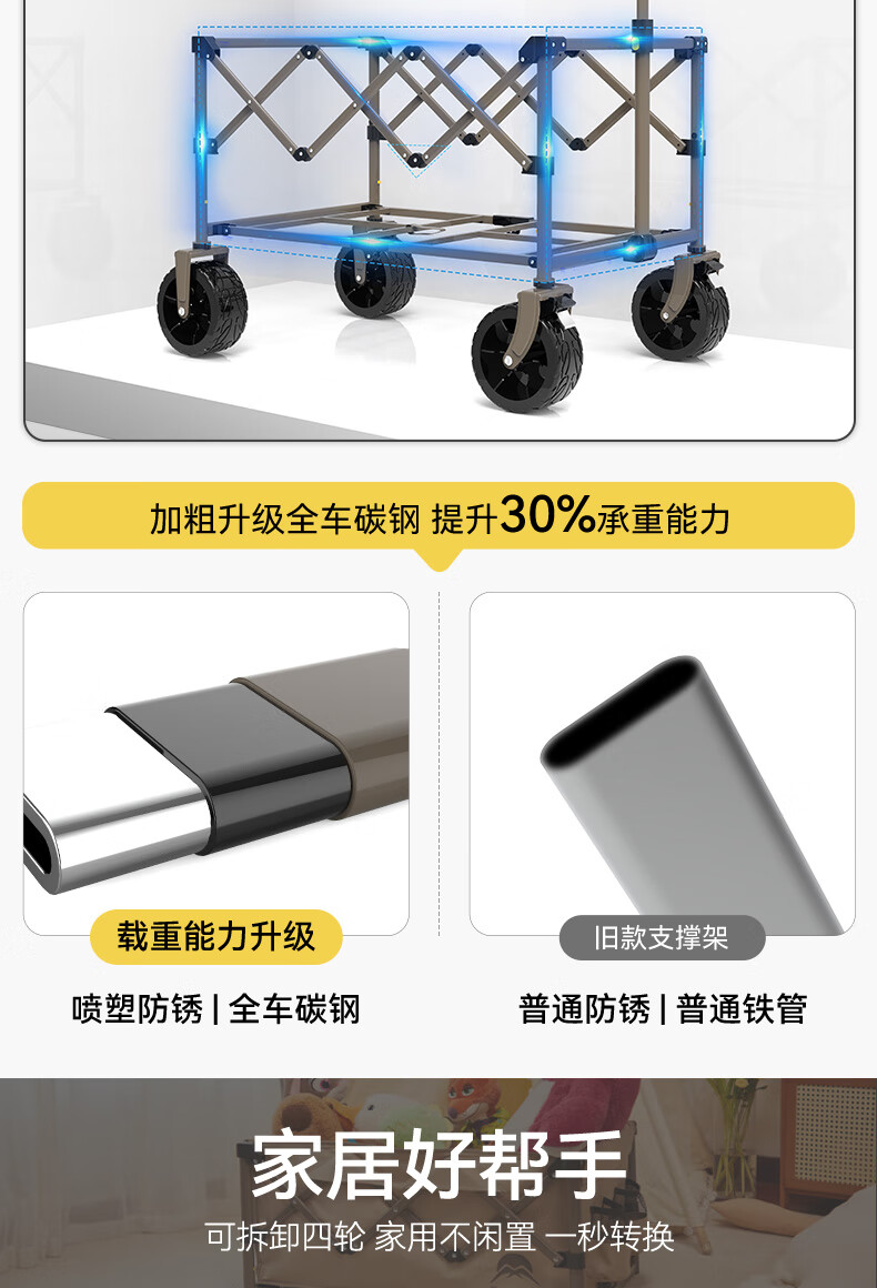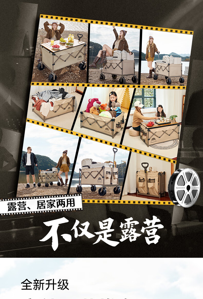 原始人露营车推车户外营地拖车超大折叠手推野餐野营手拉车遛娃小拉车 160L 双刹车万向轮聚拢款-典雅黑