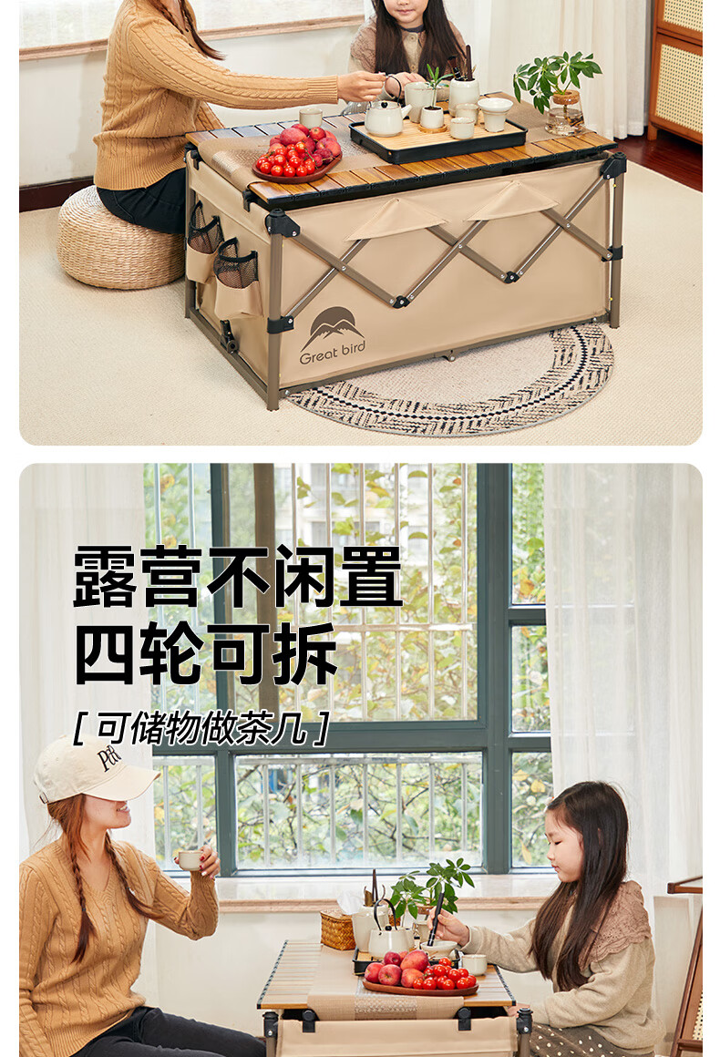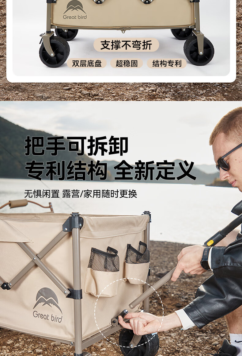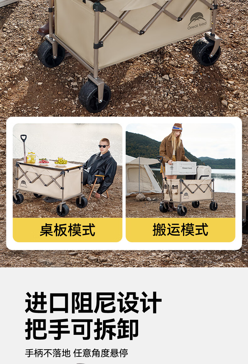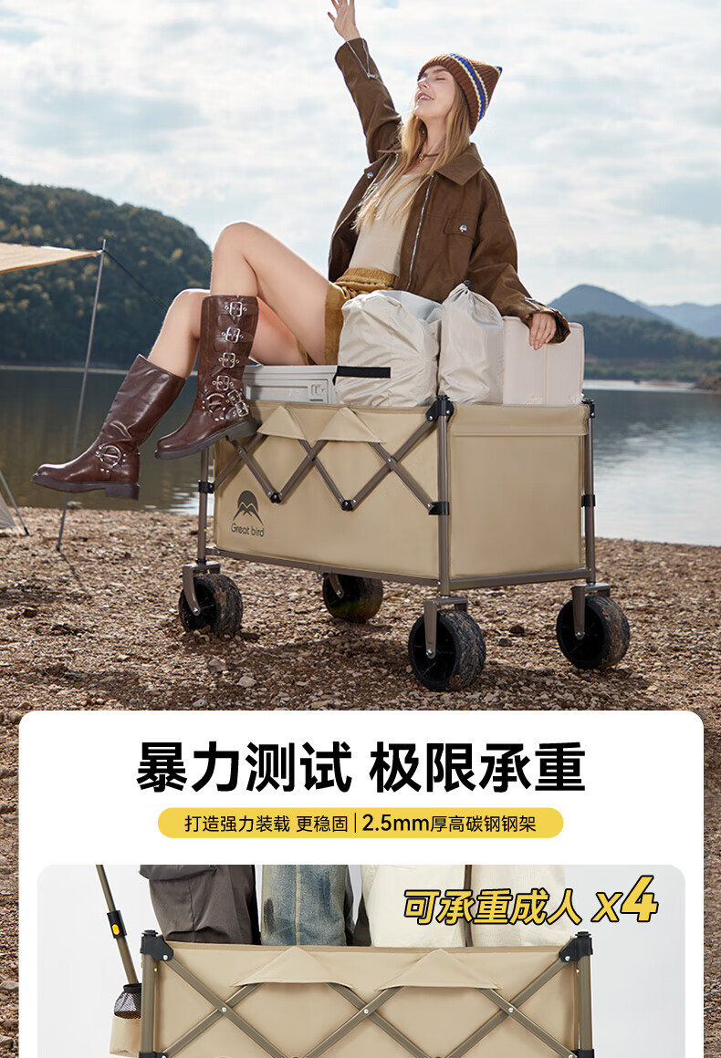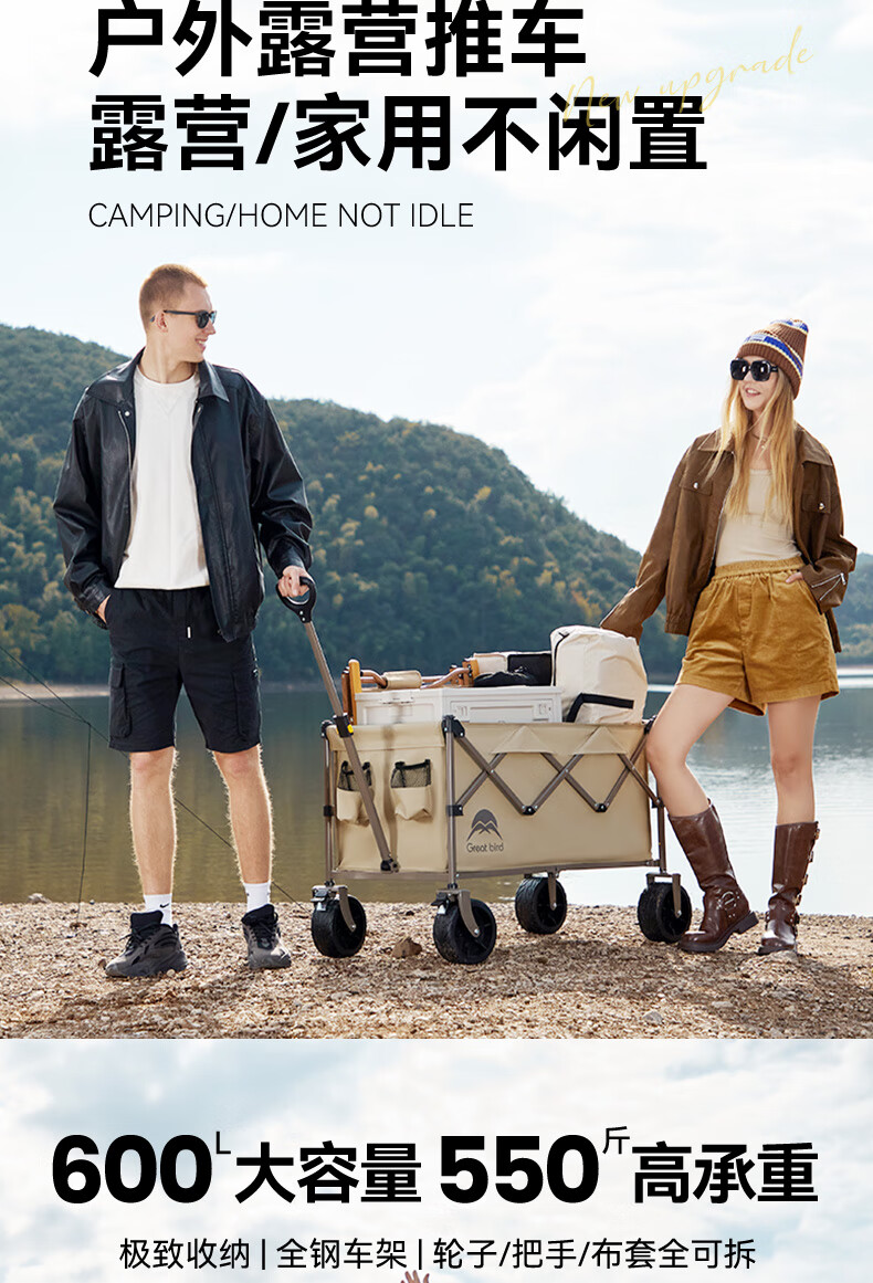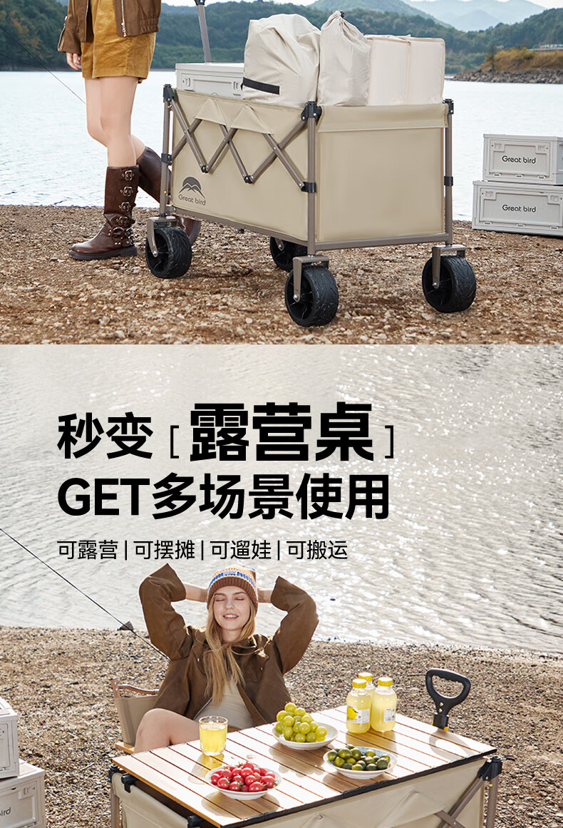 出色鸟Greatbird户外露营推车聚拢型大号带桌野餐营地拖车溜娃旅行可折叠手拉车 轻舟-极夜黑 210L