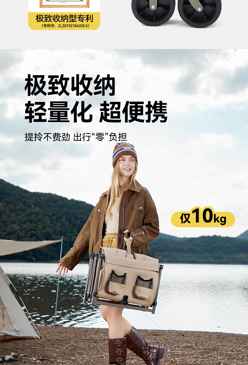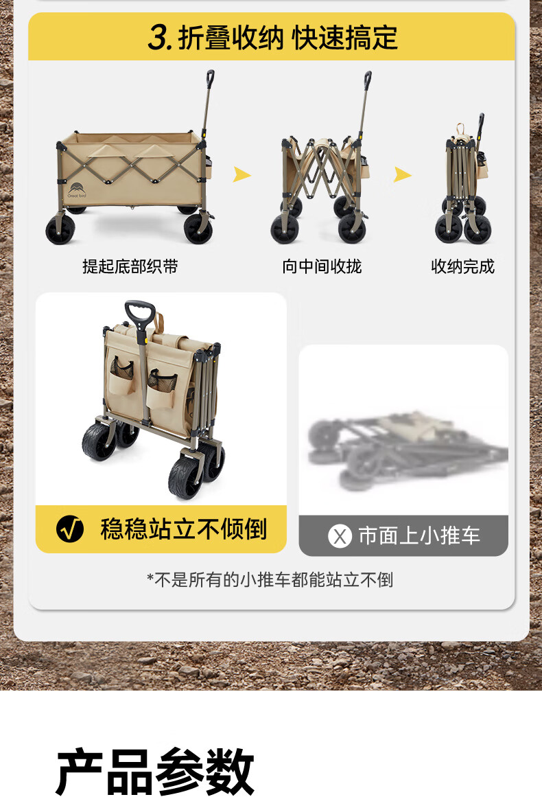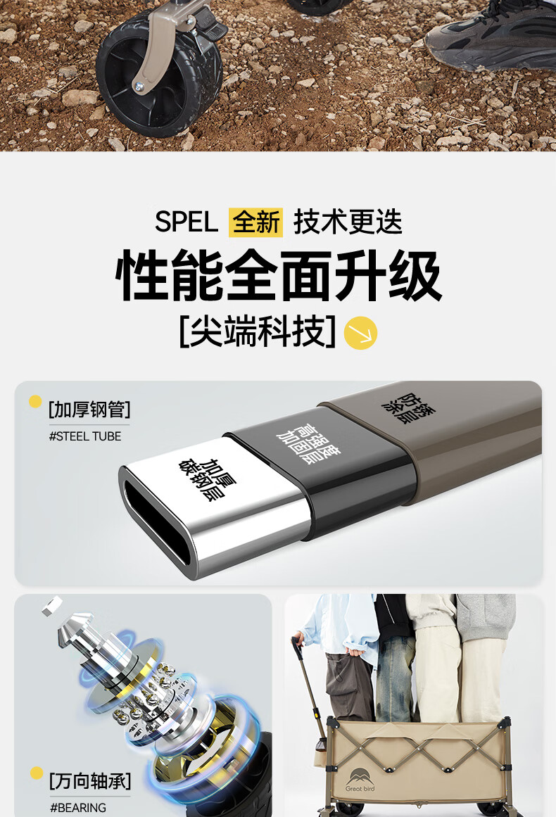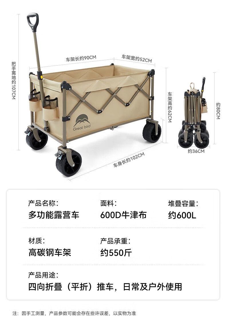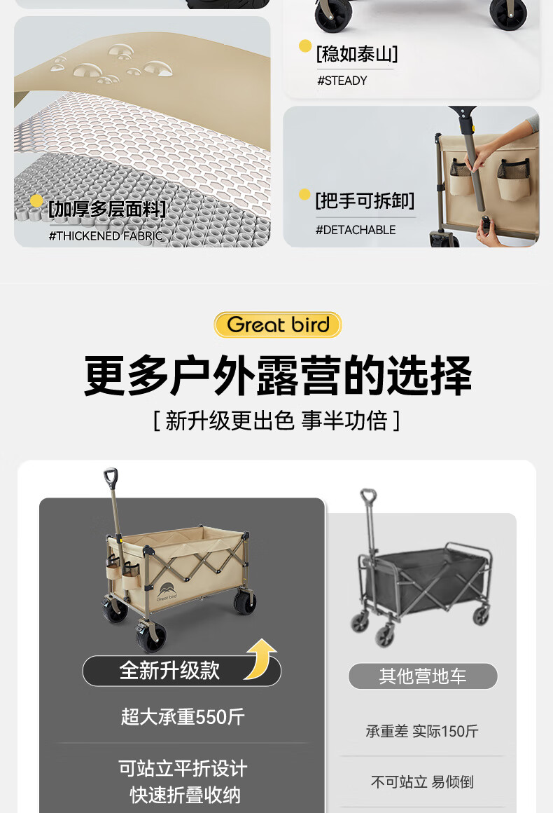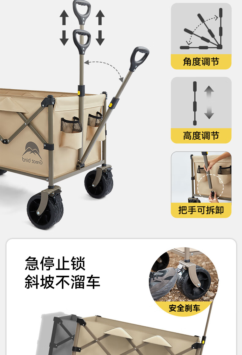 出色鸟Greatbird户外露营推车聚拢型大号带桌野餐营地拖车溜娃旅行可折叠手拉车 轻舟-极夜黑 210L