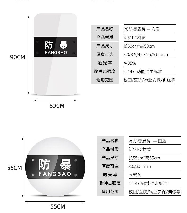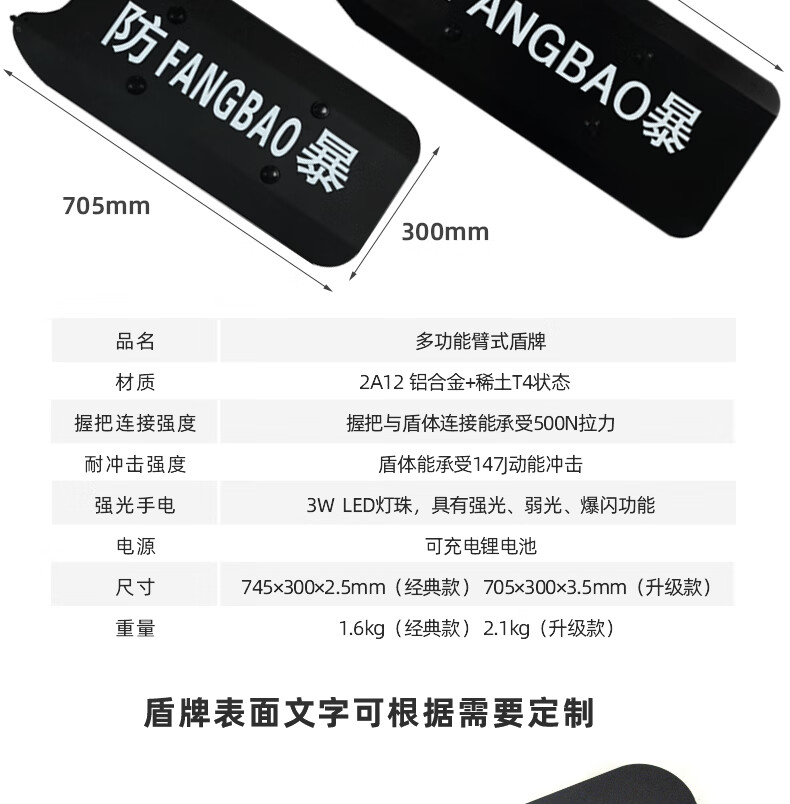 翰阳 安保器材反恐防暴盾牌防爆盾牌学校单位安检防身臂盾防护盾牌 防暴组合盾牌【1.6m】
