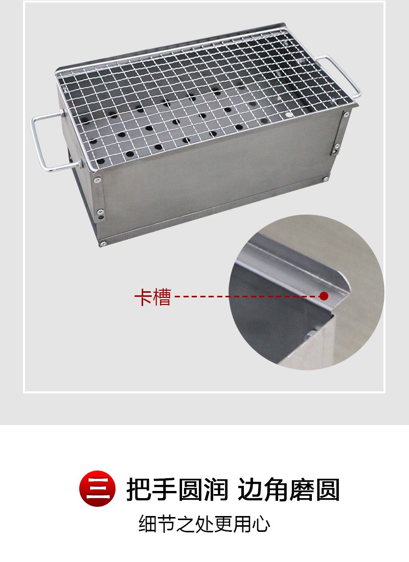 :都可以用的,很方便的,收拾一下更方便,放在架子上,不占地方,用的时候拿出来就好了。用料材质:挺结实的,我觉得没有什么大问题, 很好,适用人数:4个人没有问题做工非常好,小巧方便,今天收到就开烤,非常棒, 送的碳很好用,@时间长,就是不知道在哪里能买到这样的碳,而且老板送的