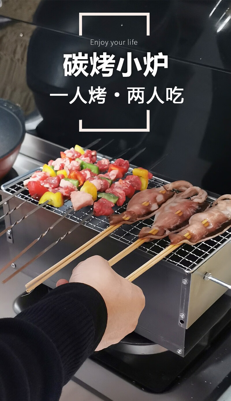 爵仁一人食烧烤炉家用木炭碳烤架户外炭烤无烤肉炉烟野外烤串炉子用具 小烤炉+烤网+油刷
