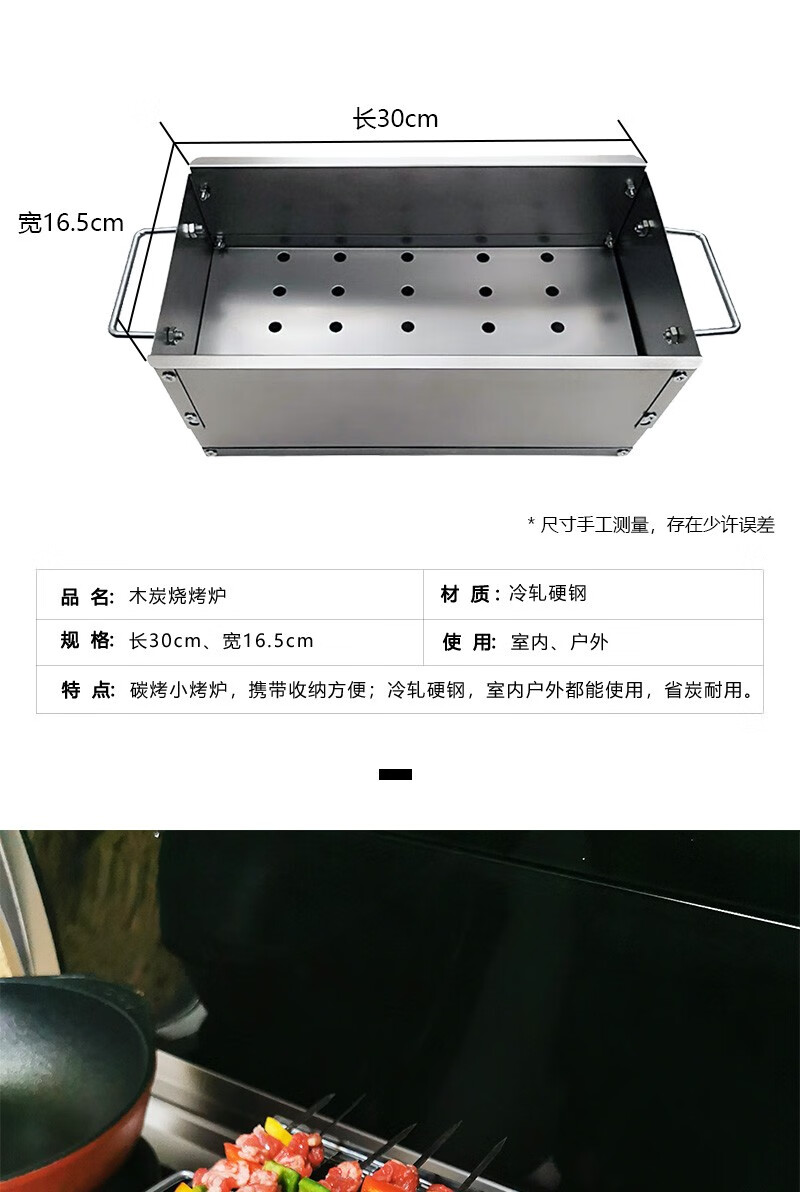 靠森(Kaooseen)全新升级烧烤木炭烧烤架子户外家用折叠工具全套炉子烤羊肉串烤肉 30*16cm无炉腿 限购1台