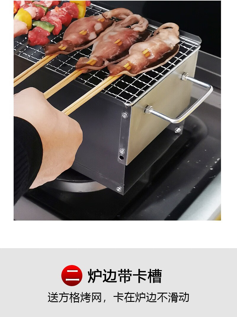 潮思汇烧烤炉烤炉加厚烧烤卡片式便携炉子家用可拆卸折叠户外木炭野外 长45cm-高30cm-2.0厚【带接灰板