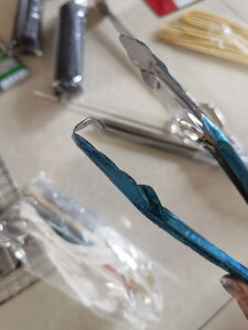 这快递也太暴力了吧,这得啥力度给摔成这个样子😓里面的夹子弯曲,签子包装破碎,全都漏了出来。炉子边缘划手,所以组装的时候要格外小心些。