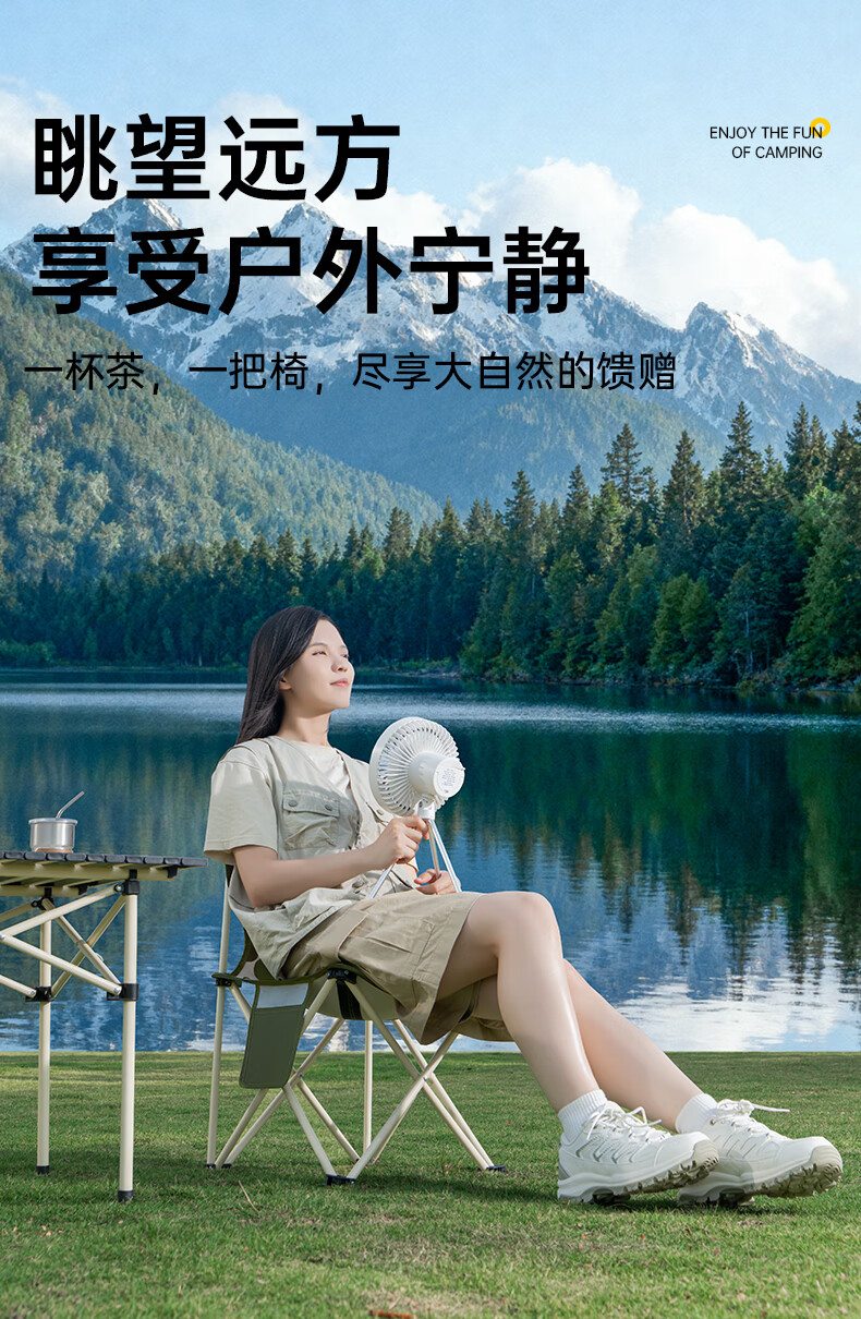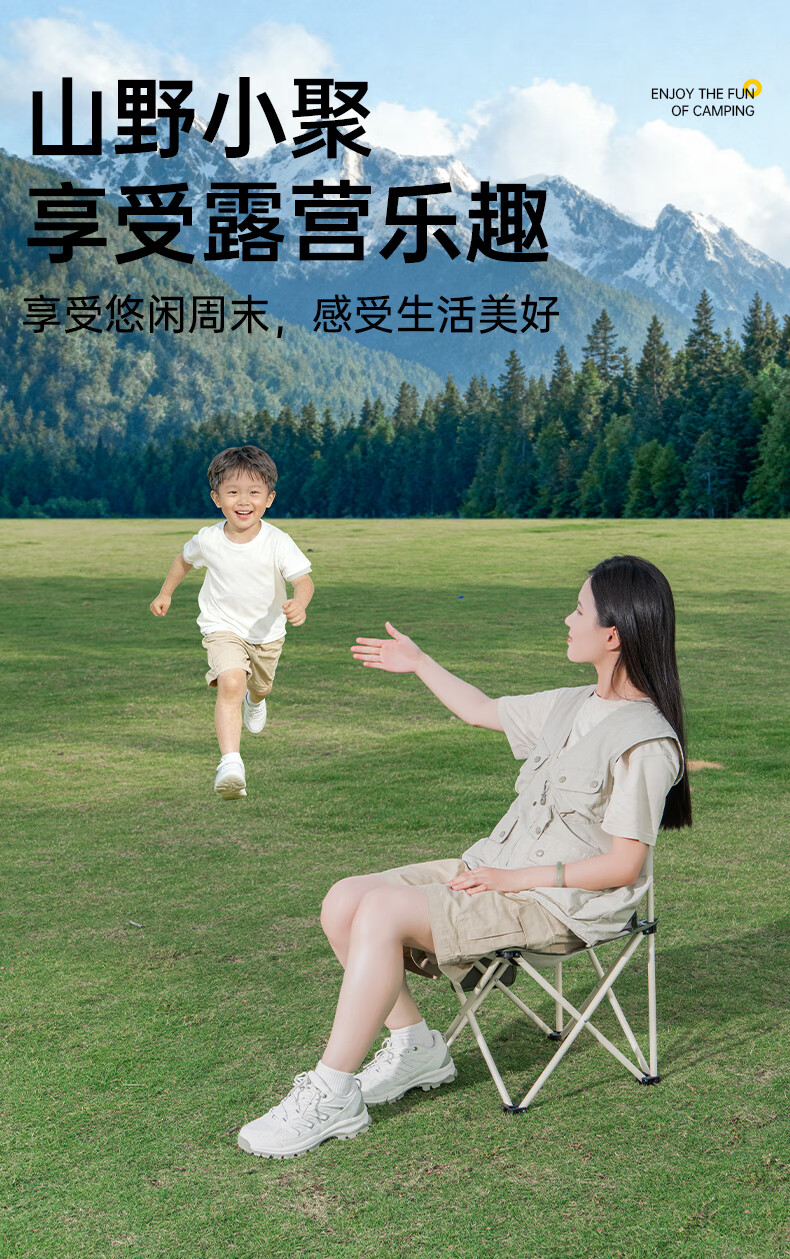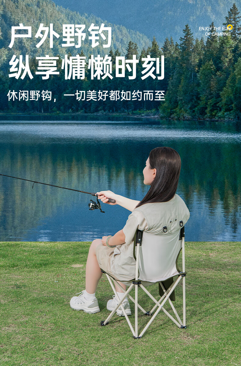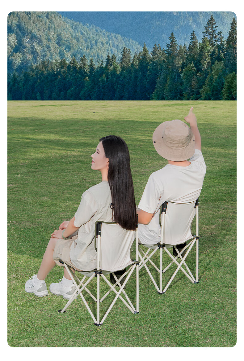 原始人户外折叠椅折叠凳露营椅子旅行桌椅野外便携式钓鱼椅沙滩椅 浅咖加大号-双层加固 强悍承重