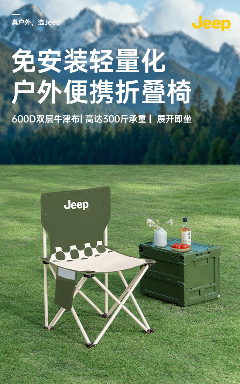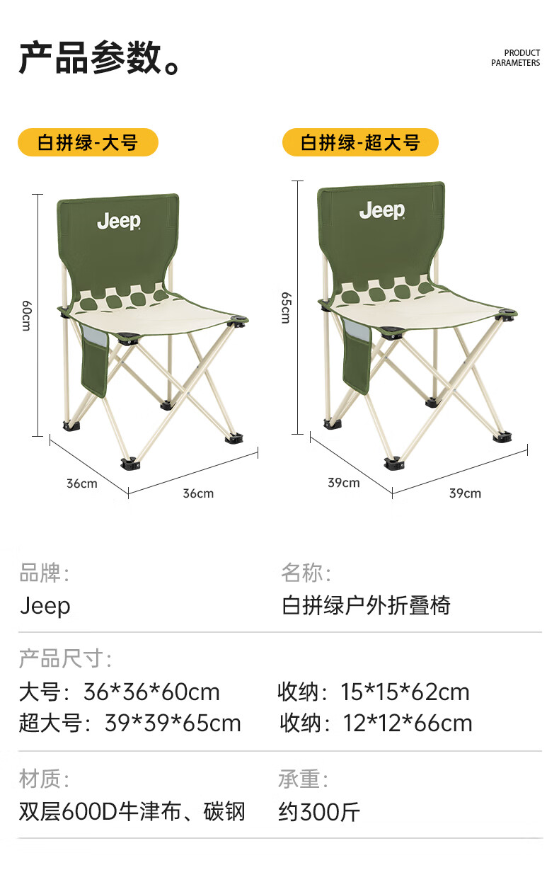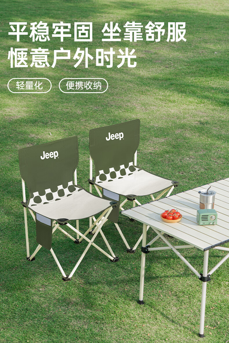 JEEP户外折叠椅露营小马扎便携凳子椅子钓鱼椅沙滩椅野外旅行用品 白拼绿大号