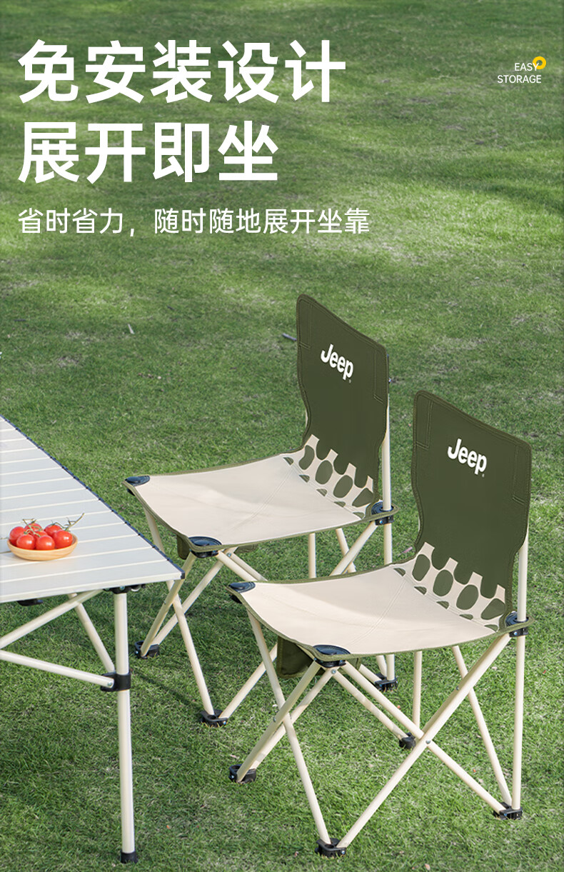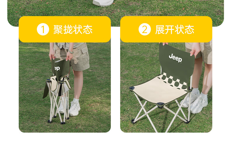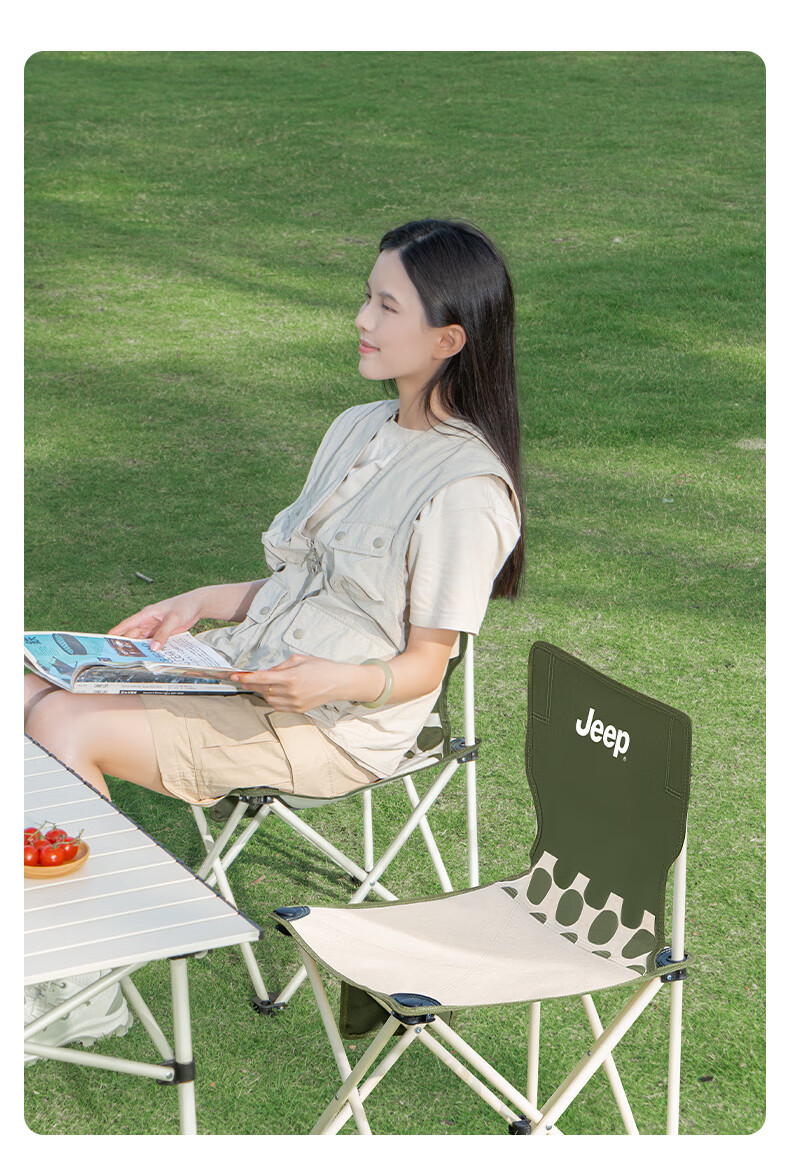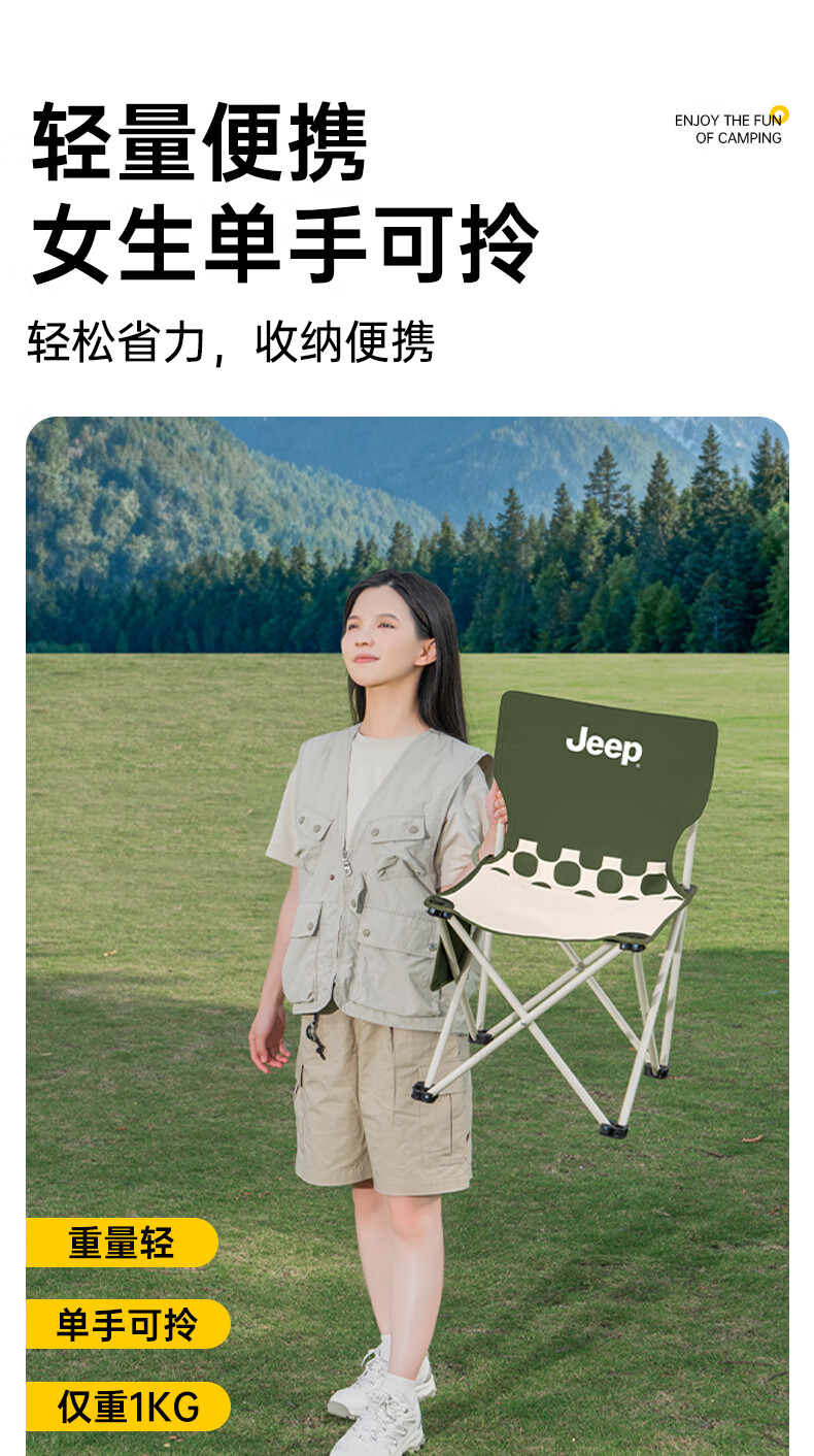 JEEP户外折叠椅露营小马扎便携凳子椅子钓鱼椅沙滩椅野外旅行用品 白拼绿大号
