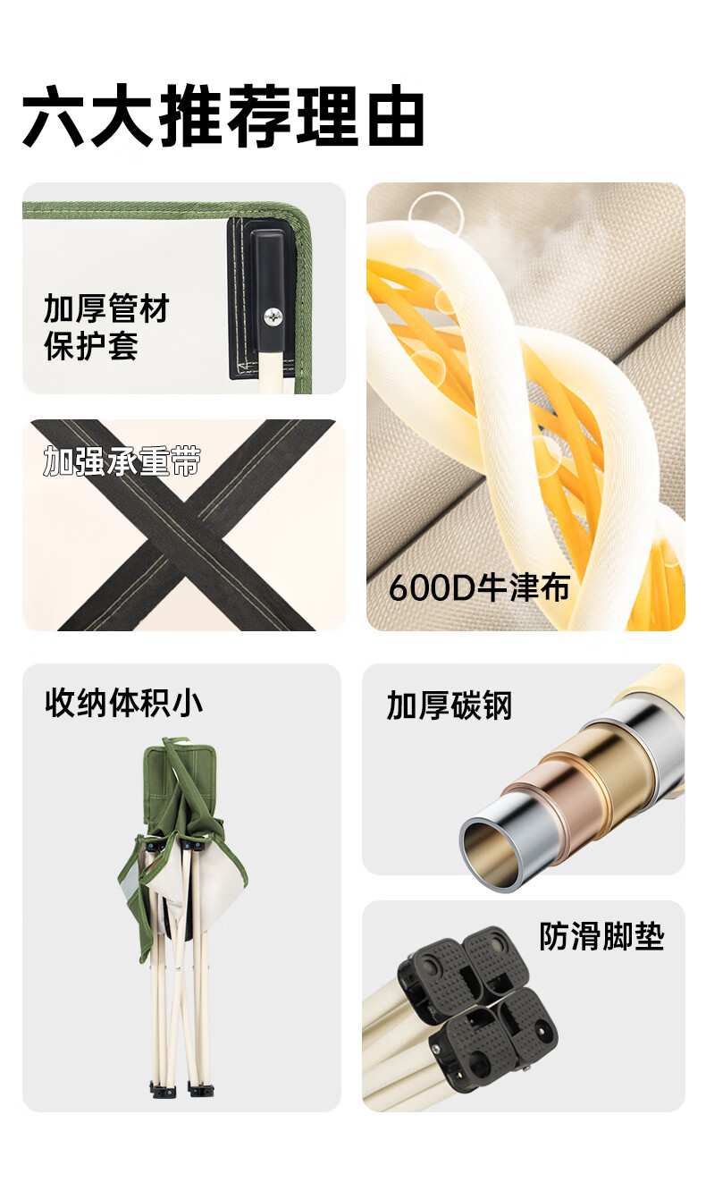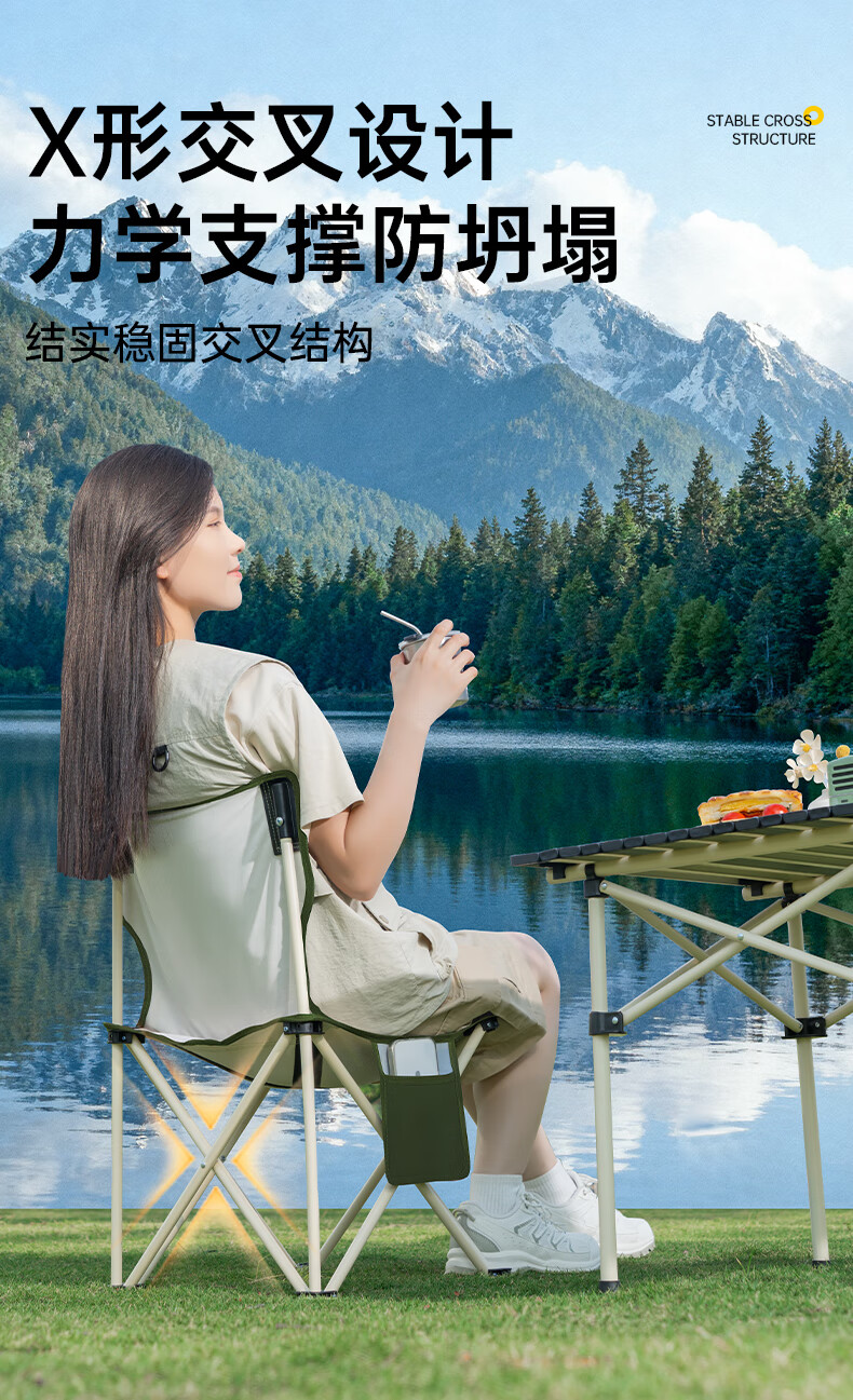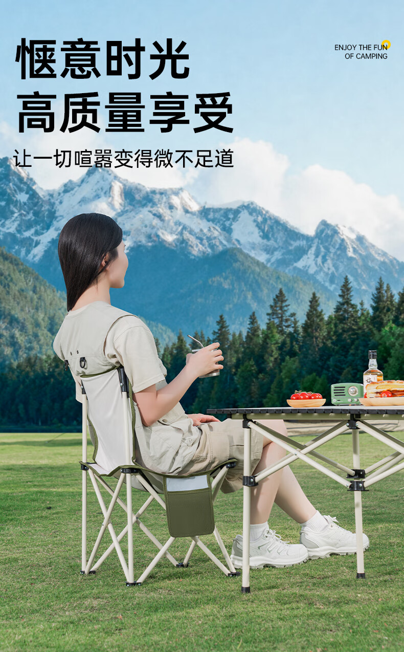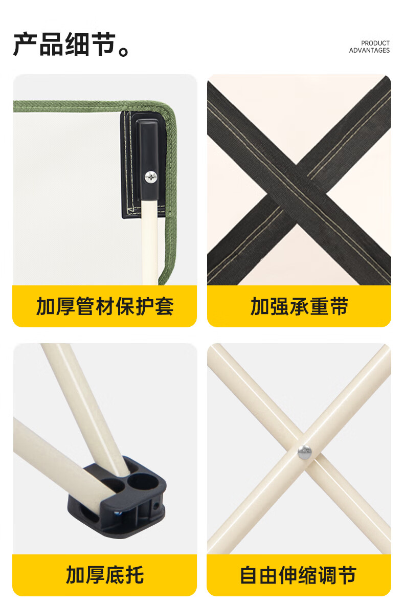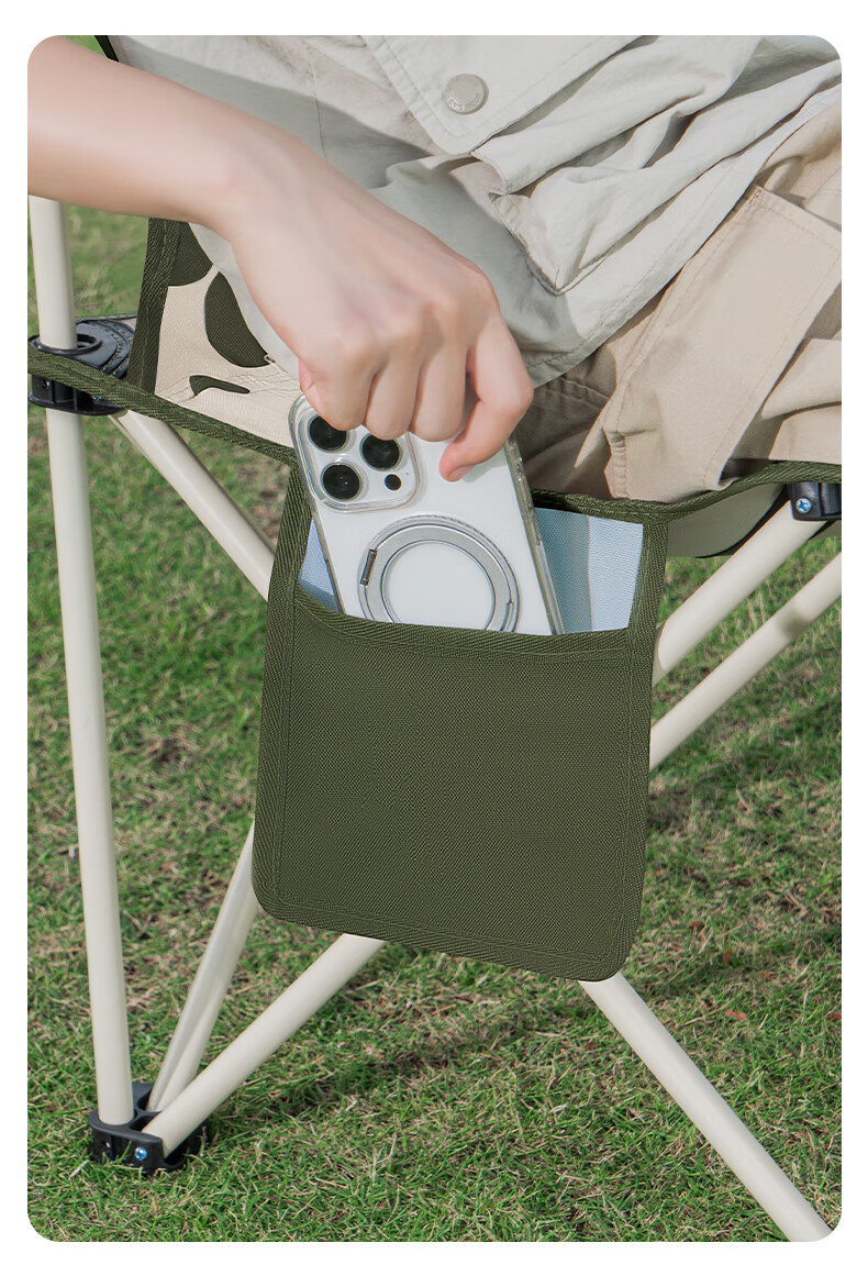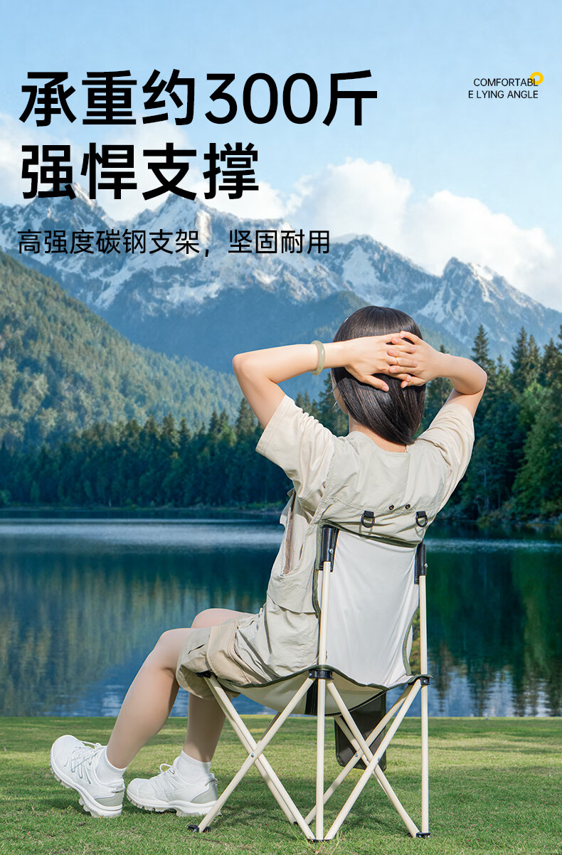 靠森(Kaooseen)折叠椅加厚结实户外便携式椅子米特野餐超轻沙滩露营凳子钓鱼桌椅 卡其色克米特椅 航空碳钢【榉木扶手】特大号