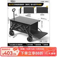 原始人户外露营折叠推车营地车手拉拖车野餐野营拖车遛娃便携买菜小拉车 420L 桌板套装【曜石黑+桌板】