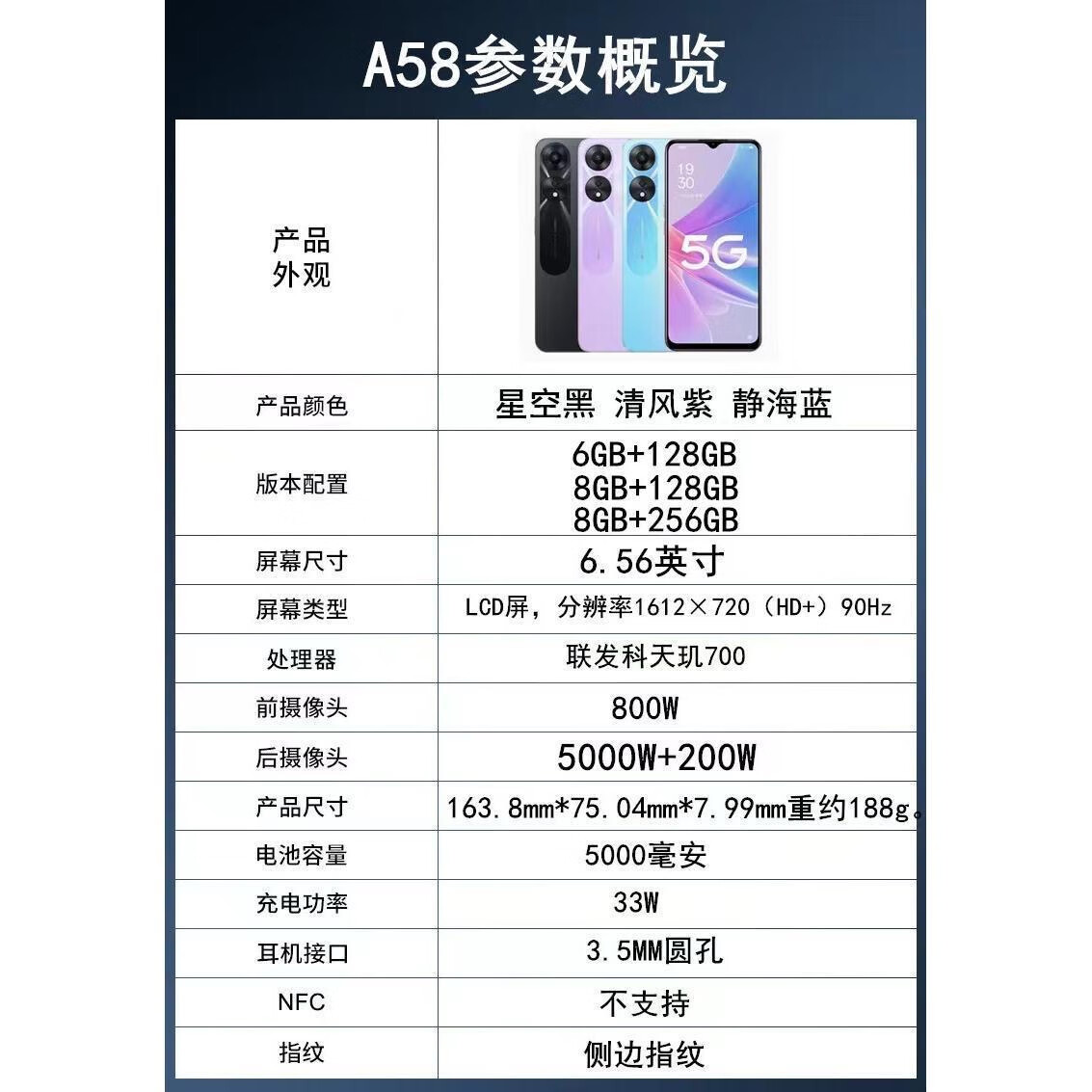 OPPOA58 新品双模5G全网通拍照手机 33W闪充 6.56英寸屏幕 5000mAh大电池 长续航 静海蓝 8GB+256GB