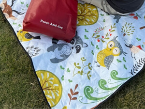 野餐垫很棒,包装完好,物流很快,垫子图案很漂亮,小孩子喜欢在上面玩耍,防潮湿比较厚实也易清洗,价格也美丽,很满意,好好好