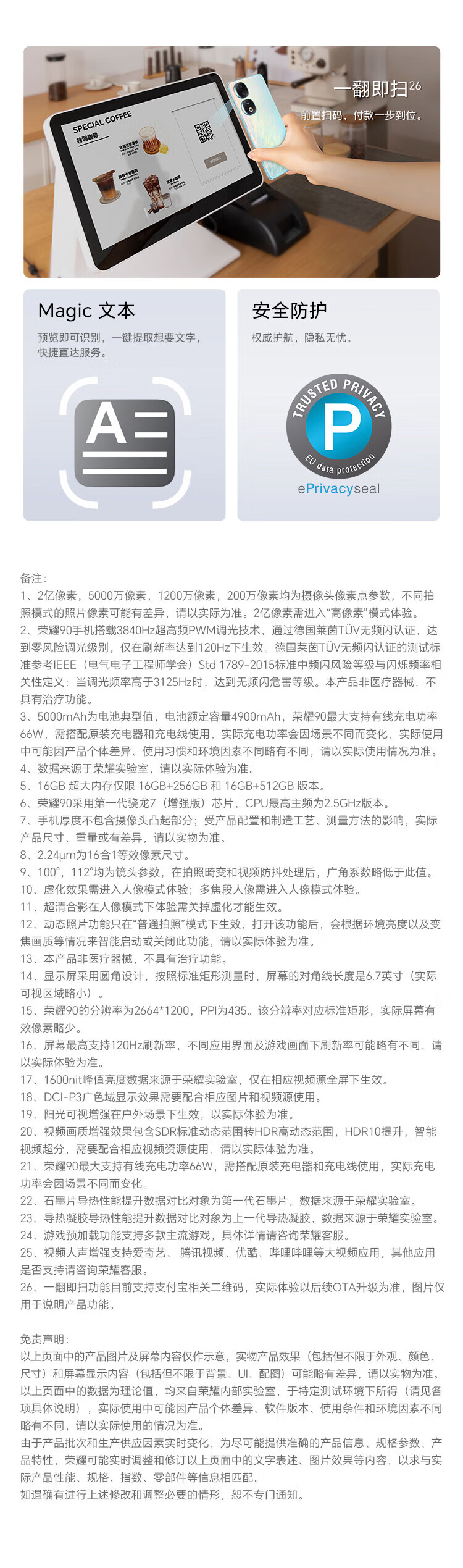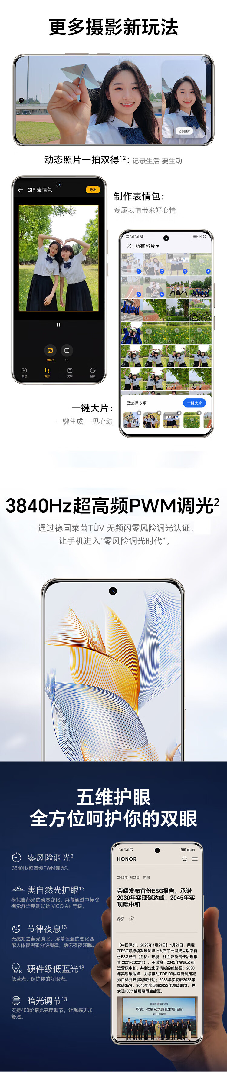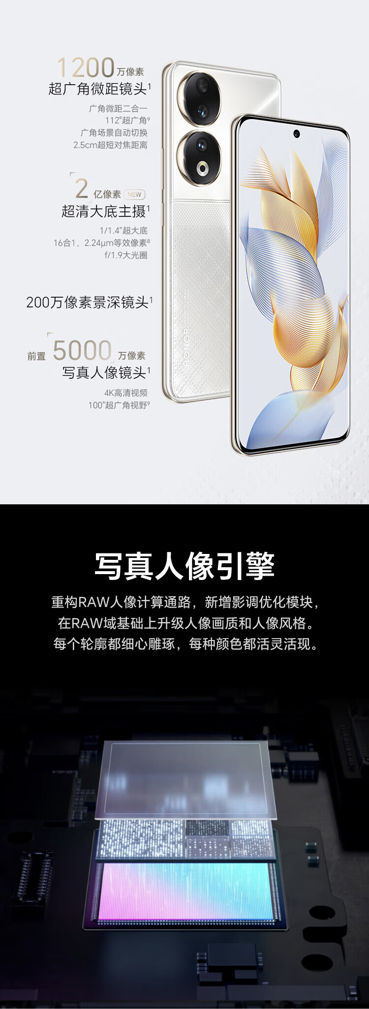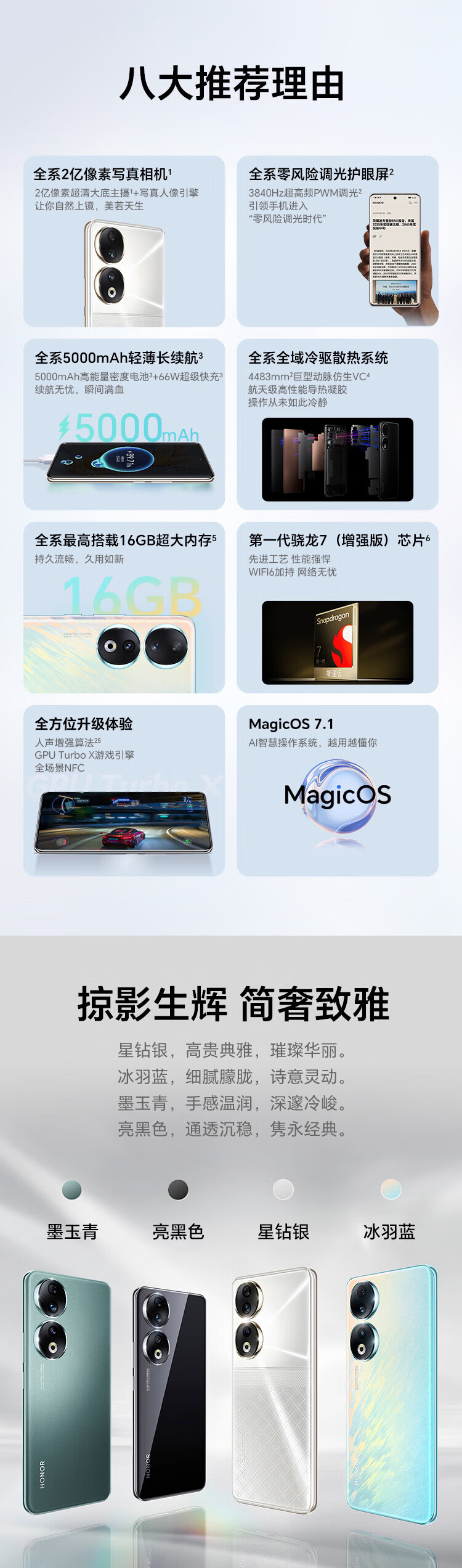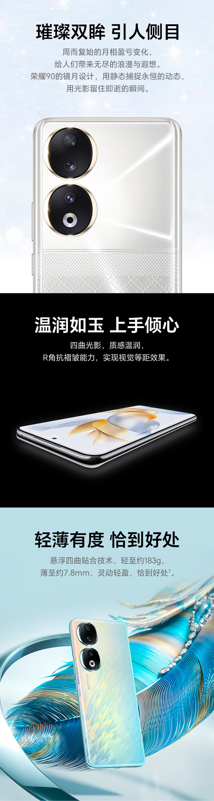 荣耀90 5G通清相机2亿像素 零调光护眼屏 5000mAh长续航 补贴机 冰羽蓝 12GB+256GB