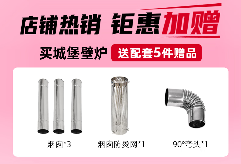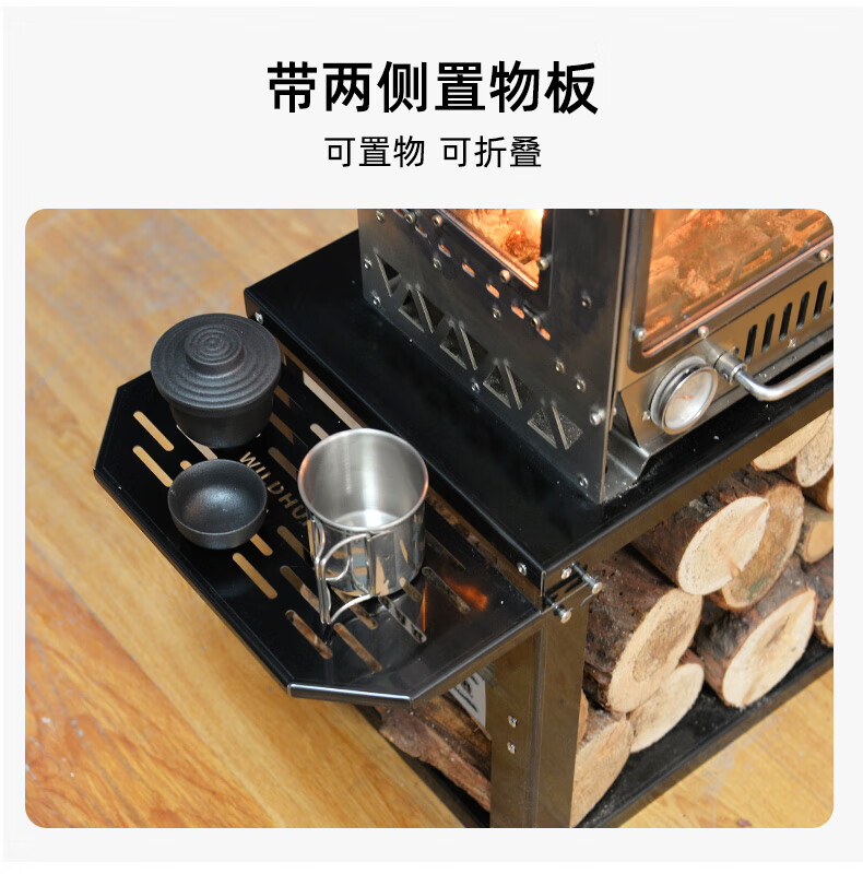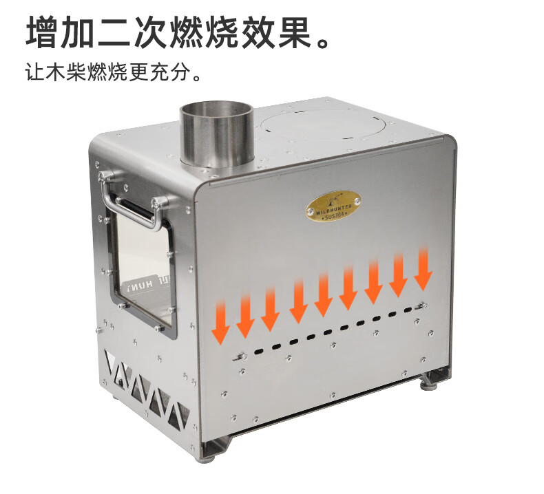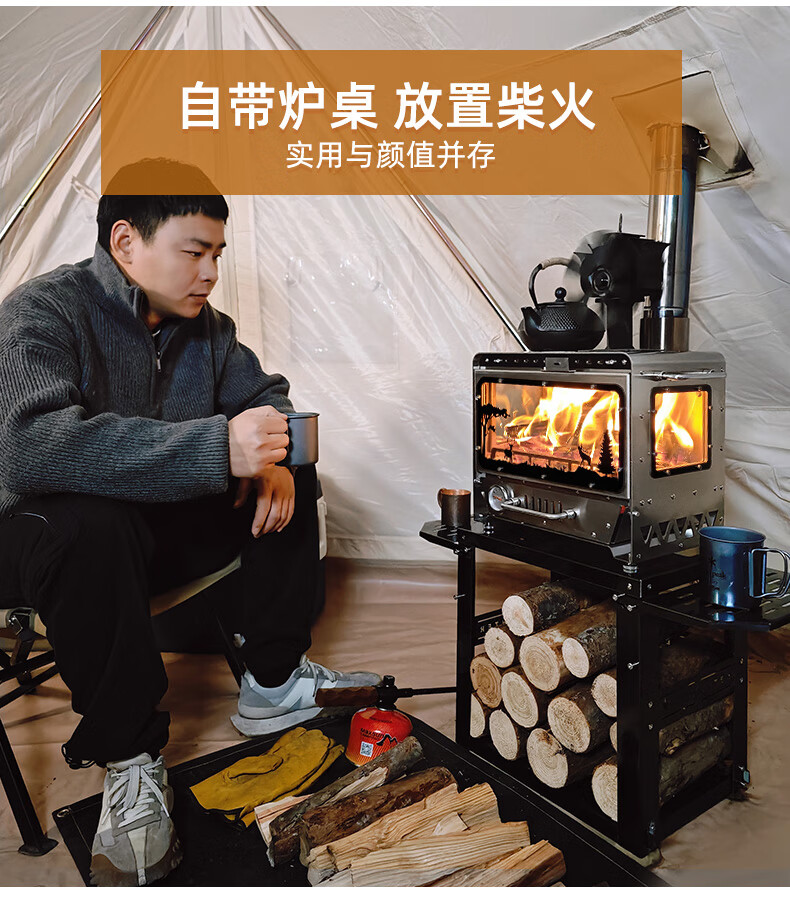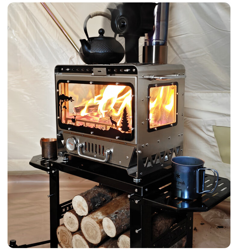 荒野猎人户外真火壁炉颗粒露营帐篷室内取暖观火煮茶304柴火炉灶 城堡.壁炉--套餐一