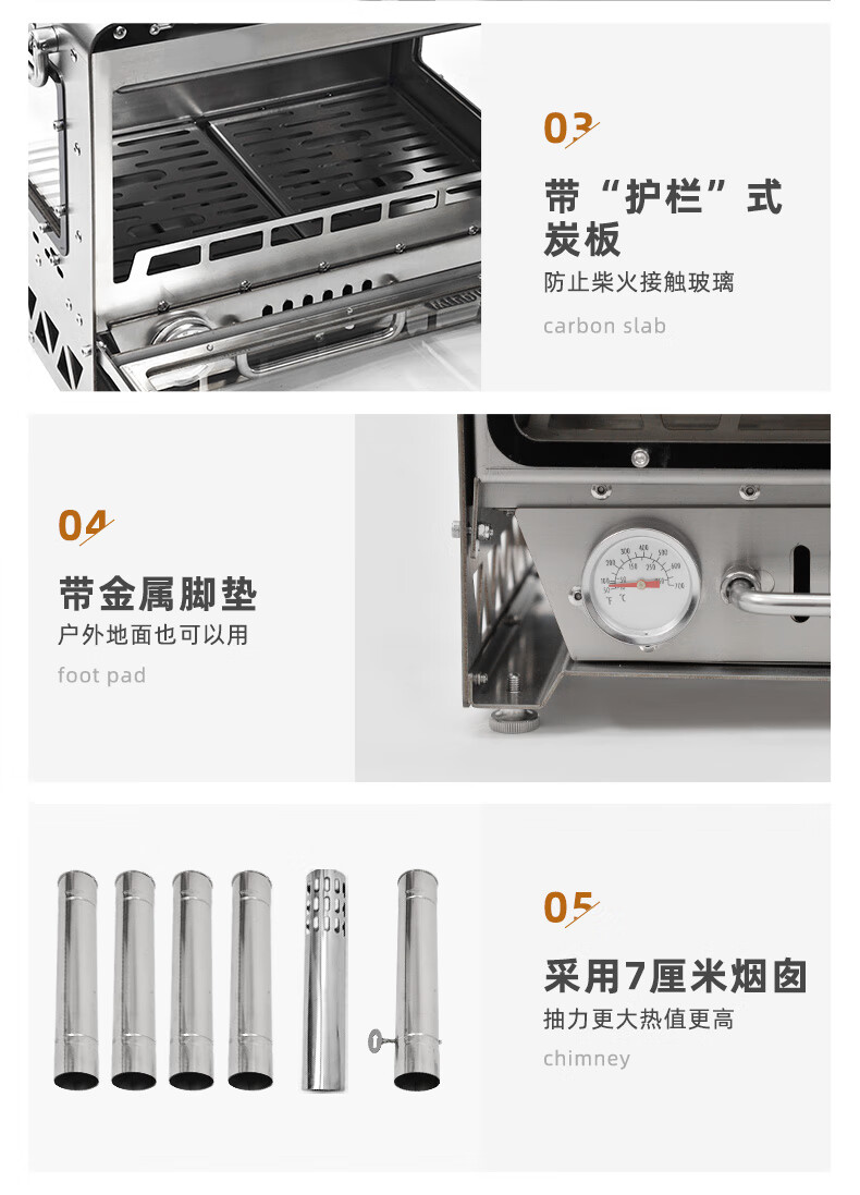 从买来开炉到现在用了四次。整体感受,松松垮垮,炉体的玻璃门,有时候会自己打开(锁不紧),比较危险。支撑桌摇摇晃晃(每次都要用六角扭紧,下次又松了),底部卡扣没有阻尼感,抬的时候一定要注意查看,都是锁住状态,否则掉下来容易产生危险。进气设计没设计好,导致使用过程中要频繁用灰耙把会摇到接灰盒,否则烧两三个小时就会,因为进气不足而黑玻璃,甚至轻微返烟(买来用的时候才发现炉体是有缝隙的,用之前以为炉膛是一体式密封的,漏烟了才发现有缝隙)。
