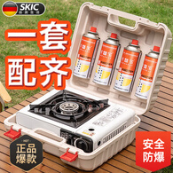 skingcond德国品质卡式炉户外可携式炉具炊具露营瓦斯炉卡斯卡磁炉灶瓦斯炉 【一箱收纳+聚能防风圈】防爆安全白色炉+4瓶进口气