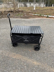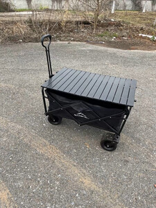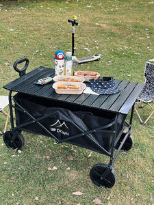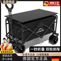 京物露营车推车户外聚拢型营地车野营可折叠小拖车便携式野餐手拉车桌 500L 有刹车 全钢车架+桌(黑色)