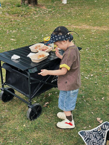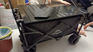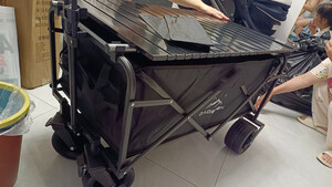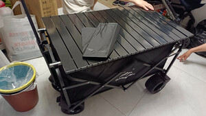 这露营小推车真的绝!摸着特扎实,走烂路都稳得很,刹车一踩就定住不滑。折起来小小一个不占后备箱,摊开桌板直接当桌子用,车斗能塞一堆东西,侧边兜还能揣手机湿巾。我一女生单手就能弄,又好看又趁手,营地好几个朋友追着问链接!