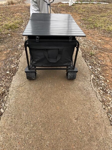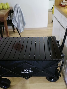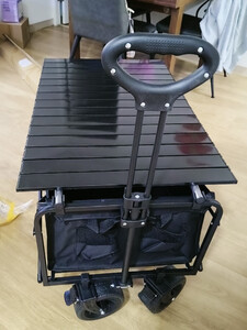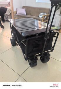 小车收到了,取货后立即拆开试用。质量不错,骨架光滑无毛刺,收纳灵活,布袋尺寸合适,拉杆收缩到位,大轮子滚动灵活无异响。桌子尺寸与车架匹配,桌面光滑,工艺不错,方便打开收纳。