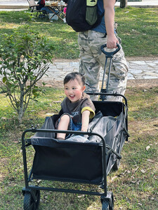 这款露营车太值了!承重超给力,装4个装满物资的大背包都不晃,拉杆推拉顺滑不费力,轮子在碎石路、草地都能平稳走,没一点卡顿。折叠后特别小巧,塞后备箱不占地方,打开也只要几秒,不用费劲组装。布料厚实防水,下雨溅到水擦下就好。上次带娃露营全靠它运东西,省力又能装,已经推荐给露营群的朋友,真心满分!
