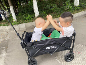 做了很多功课,选的这款牧高笛星际营地车,360度万向轮、碳钢材料轴承,转向特别灵活,加大加宽越野轮 全地形双刹,无论是草地平地还是坡地,稳定性都特别好,一拉即折叠 收纳很方便。