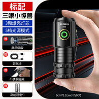 桐汝壁四眼怪兽强光充电便携迷你爆亮户外家用手电随身小型 三眼定焦_标准版单电_强磁吸附_