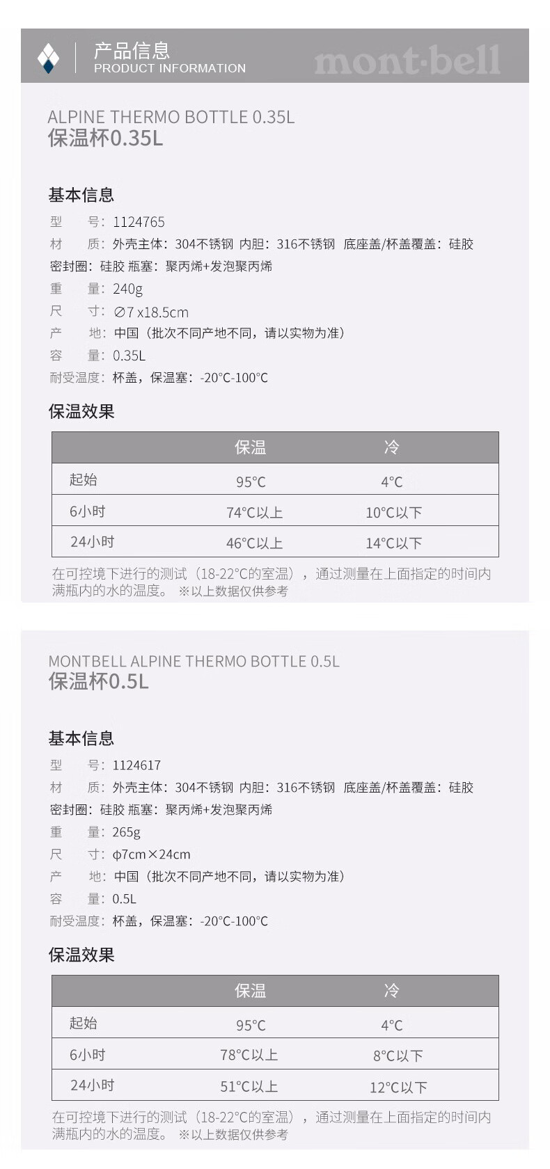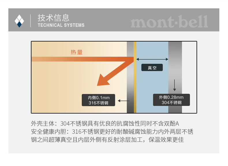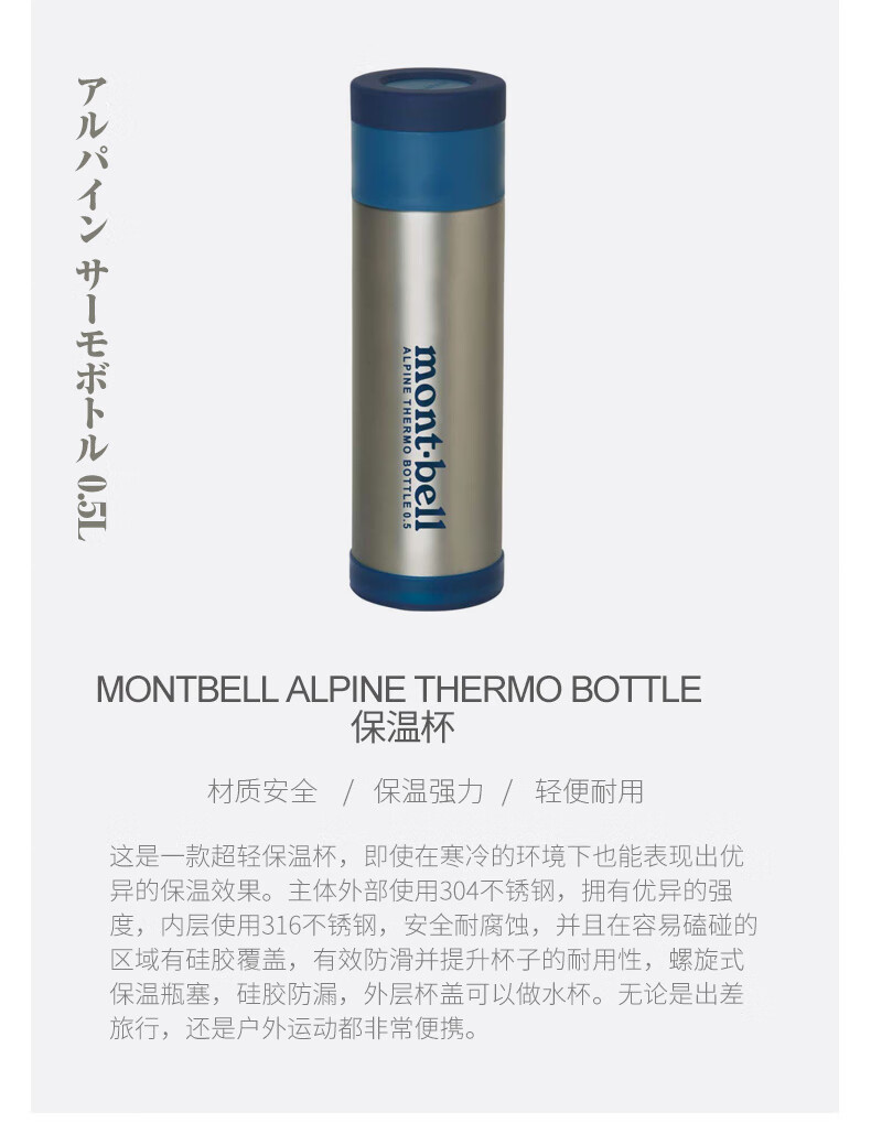 mont·bell保温杯不锈钢保温水壶便携杯子不锈钢色900ml 不锈钢色 900ml 900ml