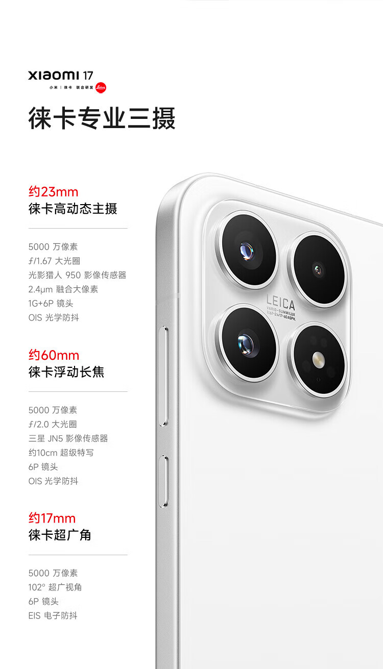 小米(MI)小米17proMax 至高24期免息 妙享背屏 第五代骁龙8至尊版 7500mAh小米金沙江电池 新品5G手机 白色 16GB+512GB