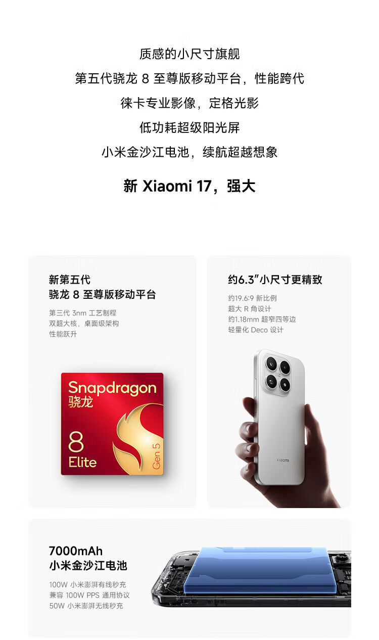小米(MI)17 5G旗舰拍照手机 2025款新品上市 徕卡超清影像 无线快充 海量存储 巨量电池 抗摔防水 无promax 黑色 16GB+512GB 24期免息【蓝牙耳机+3年质保+碎屏险】