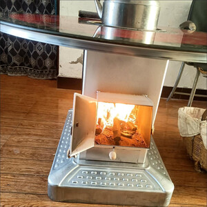 能师傅【送货上门】气化炉家用室内烤火炉柴煤两用节能无烟柴火炉灶农村 正方形不锈钢桌面或玻璃桌面可选【柴煤两用 加厚款】