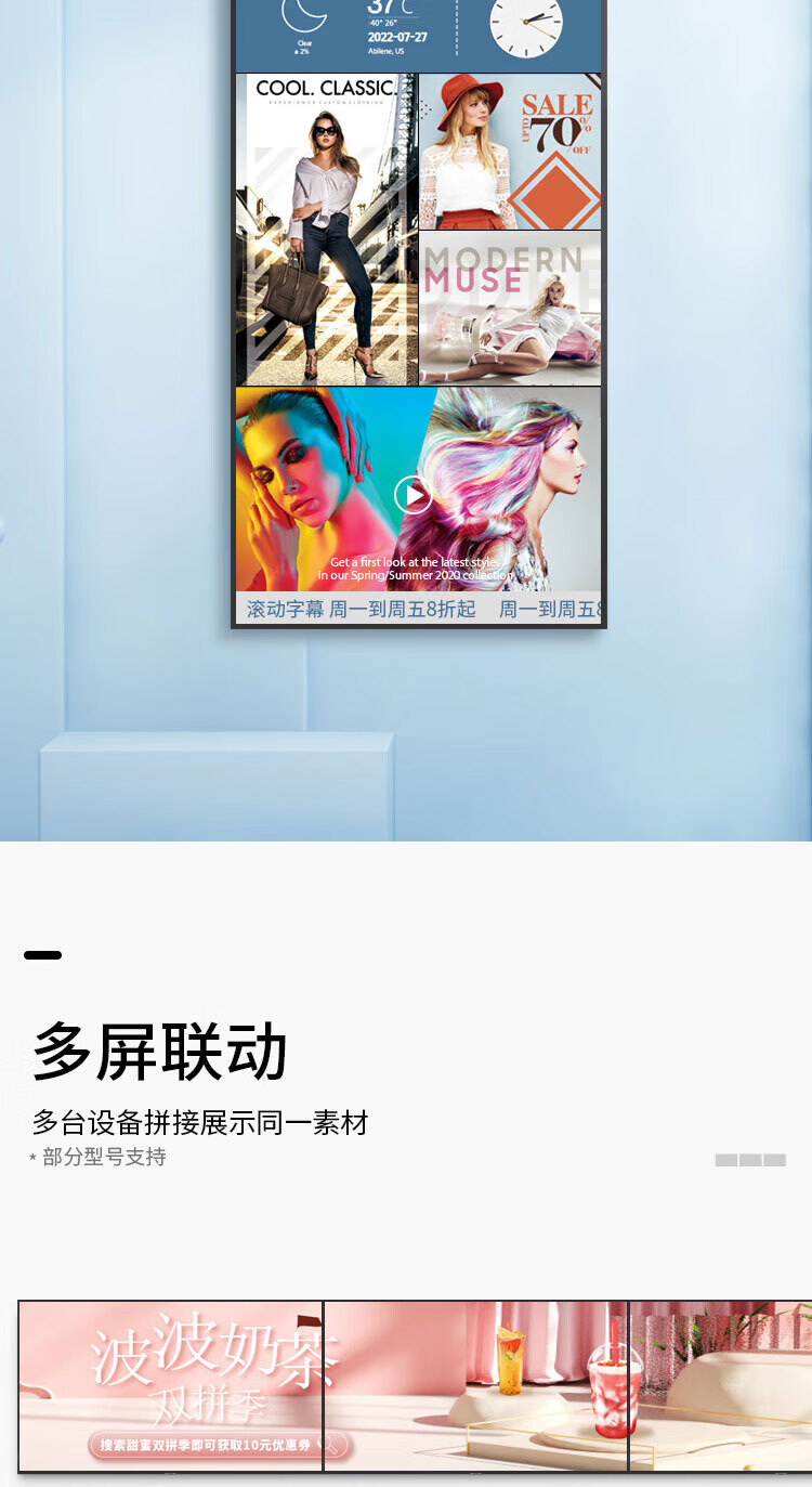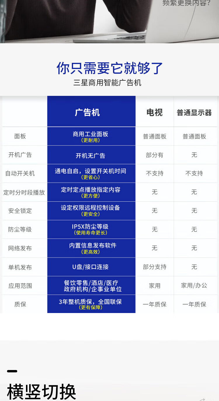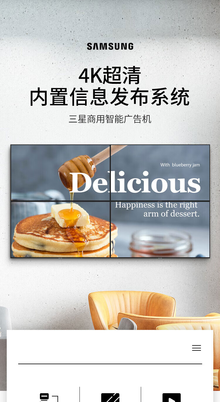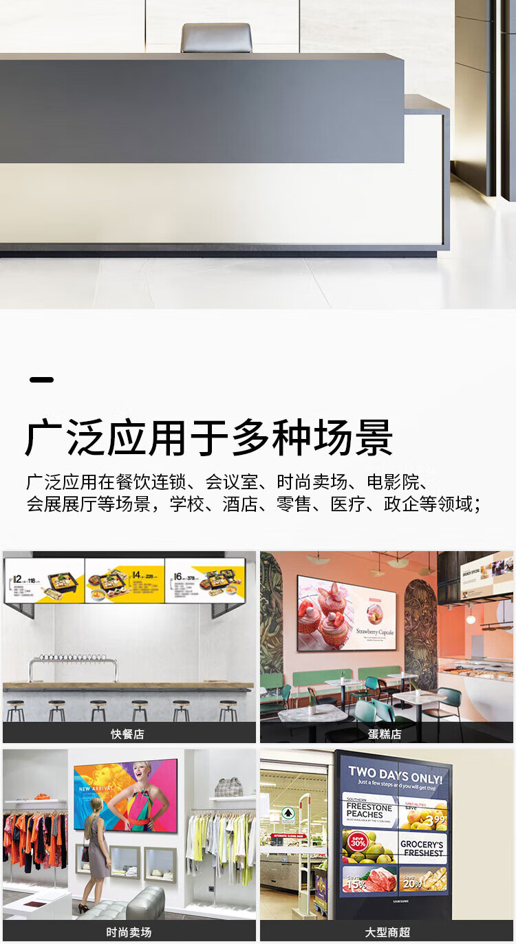 三星(SAMSUNG)4K超薄壁挂横竖屏广告机宣传广告屏数字标牌商用显示监视器展厅店铺海报横竖分屏 32英寸