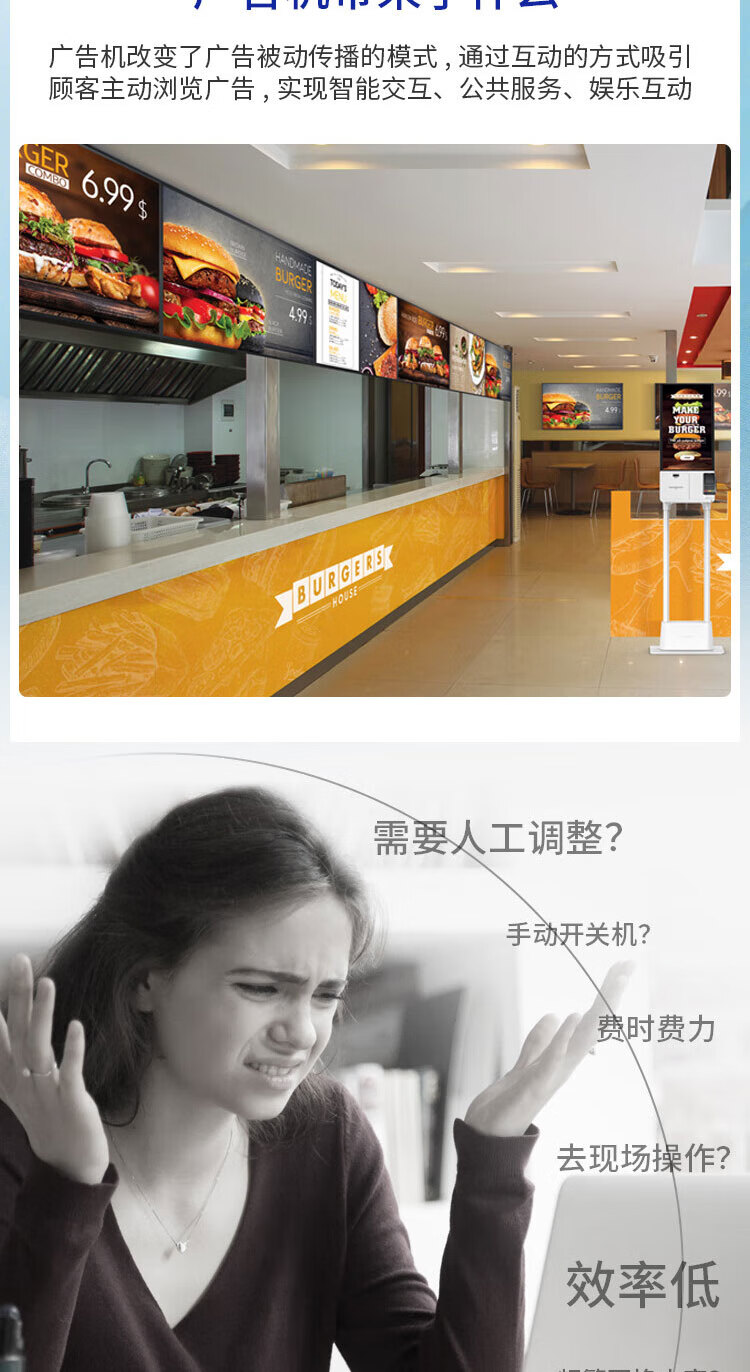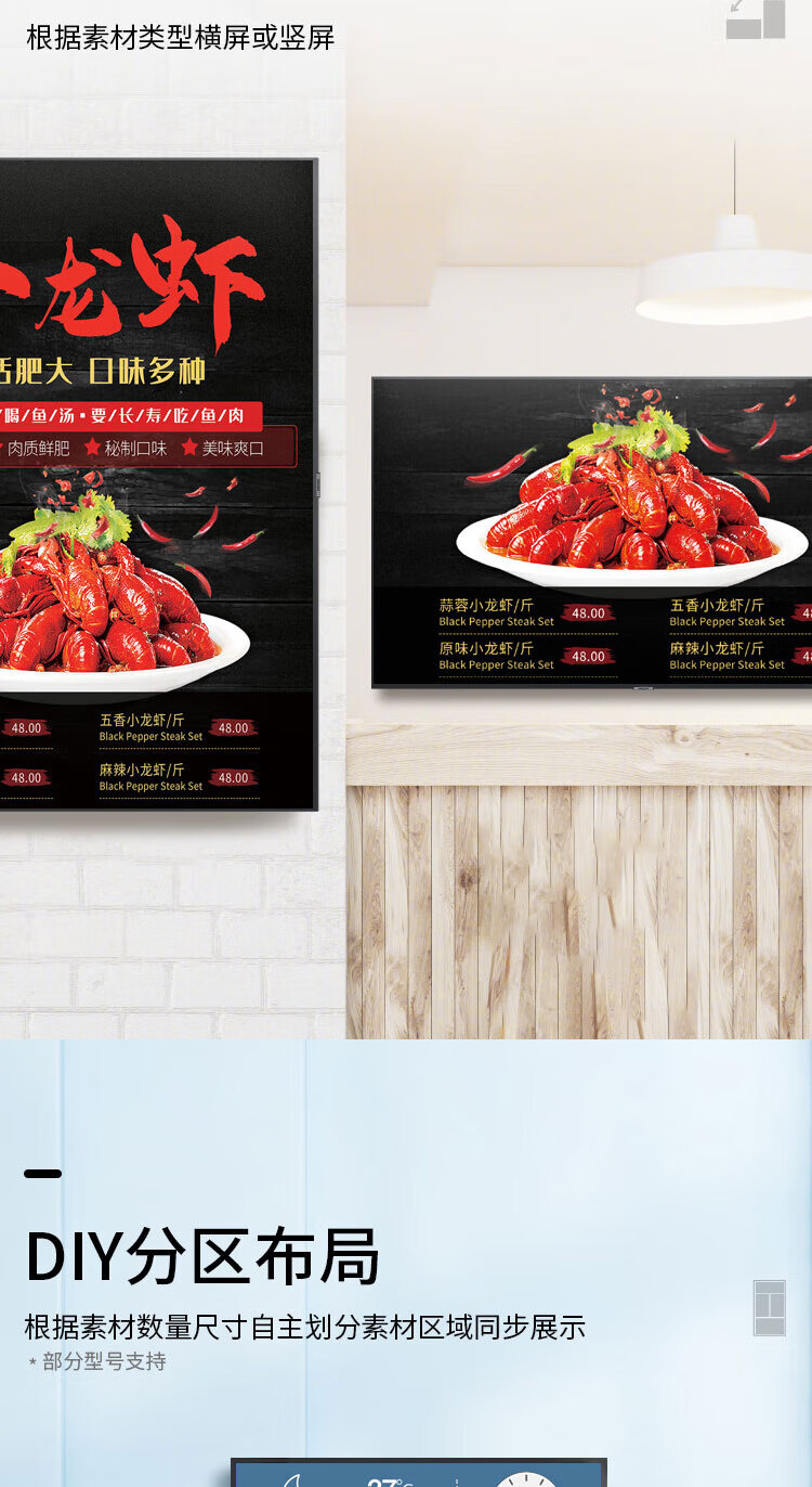 恩腾 壁挂吊挂广告机水果酒店液晶显示屏奶茶店吊装点餐价目表切换画面滚动灯箱展示牌海报机显示屏 21.5英寸单机吊挂广告机