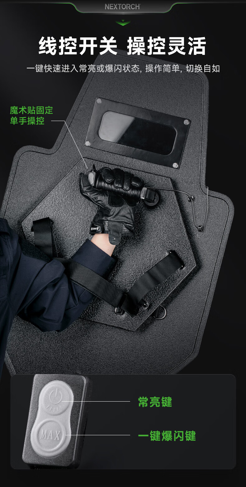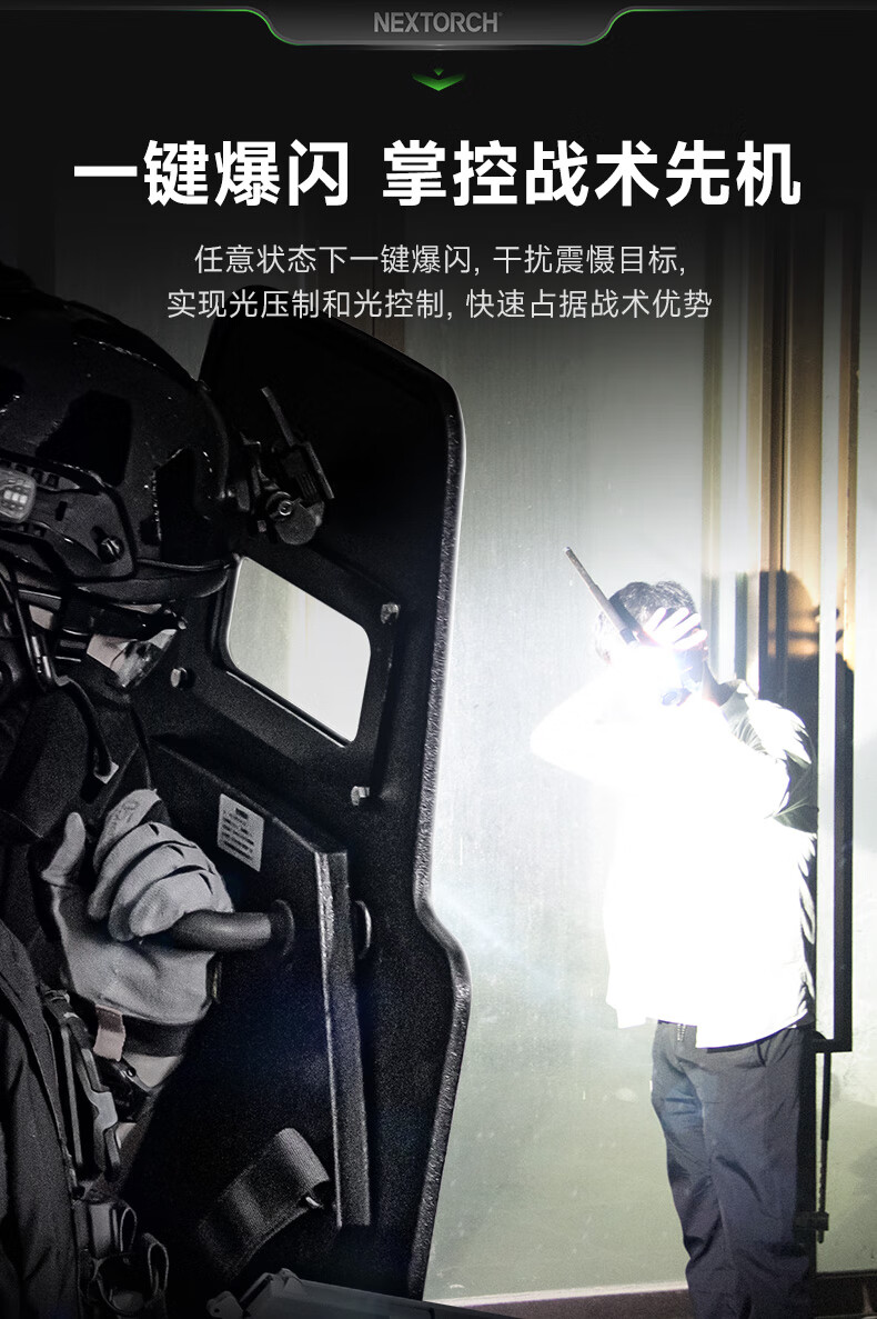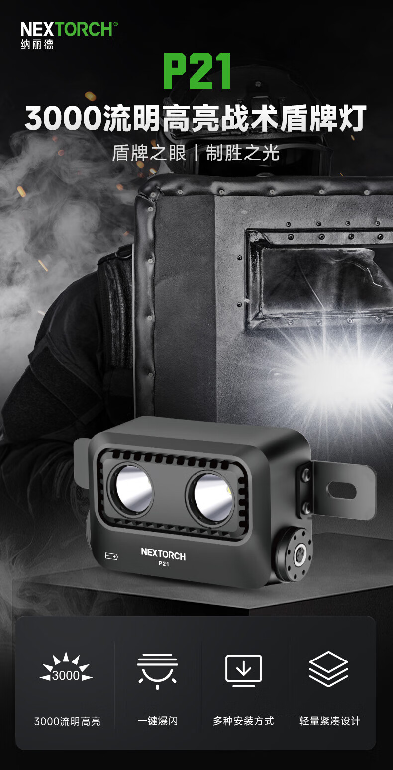 纳丽德(NEXTORCH)P21战术盾牌灯3000流明高亮250米远射一键爆闪防卫魔术贴无损安装 P21(3000流明高亮)