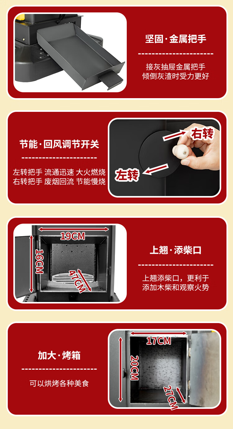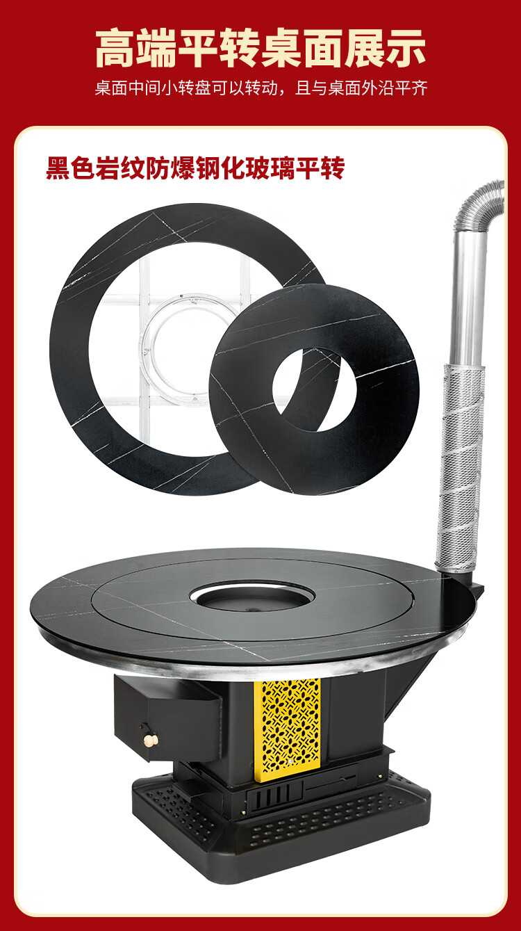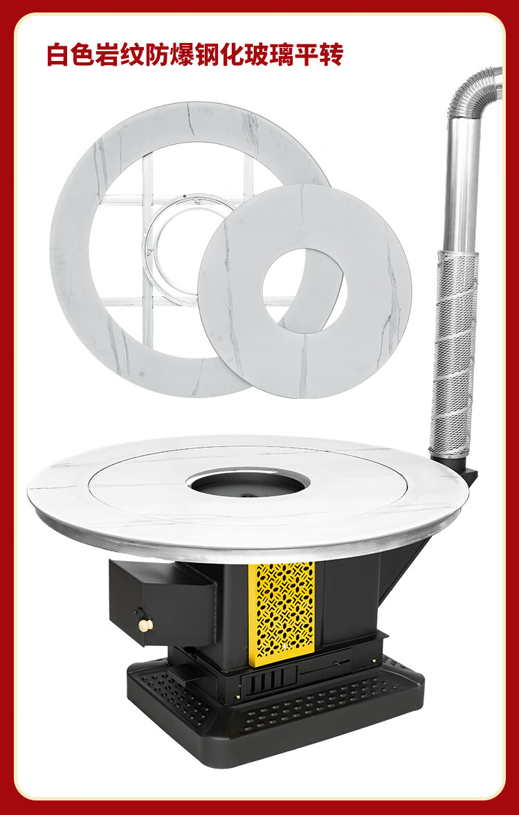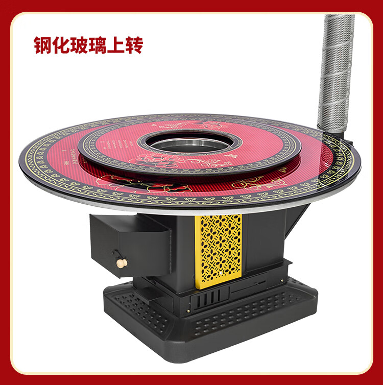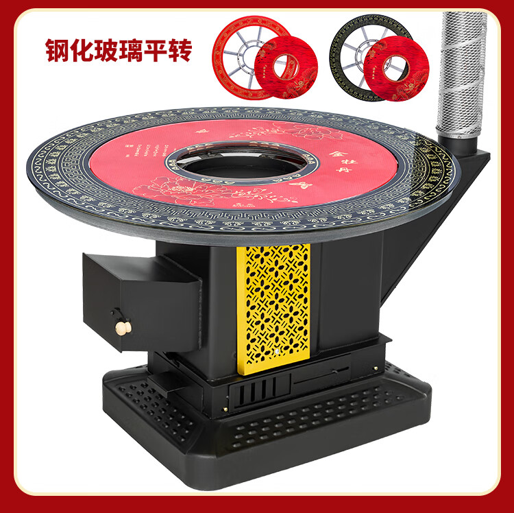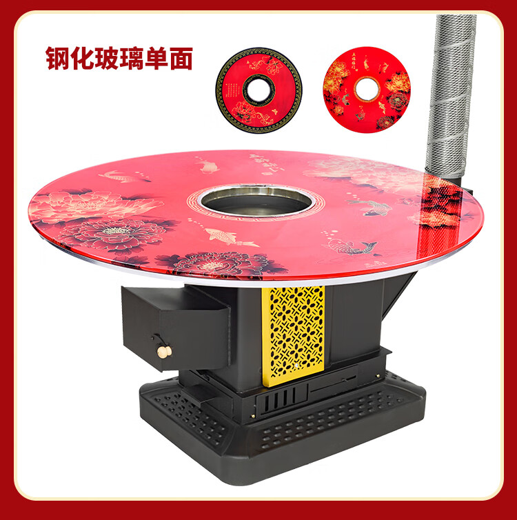 璞灶旺回风炉农村家用取暖柴火炉煤火炉柴煤两用炉多功能烤火桌节能取暖 0.8米钢化玻璃桌面 柴煤两用炉