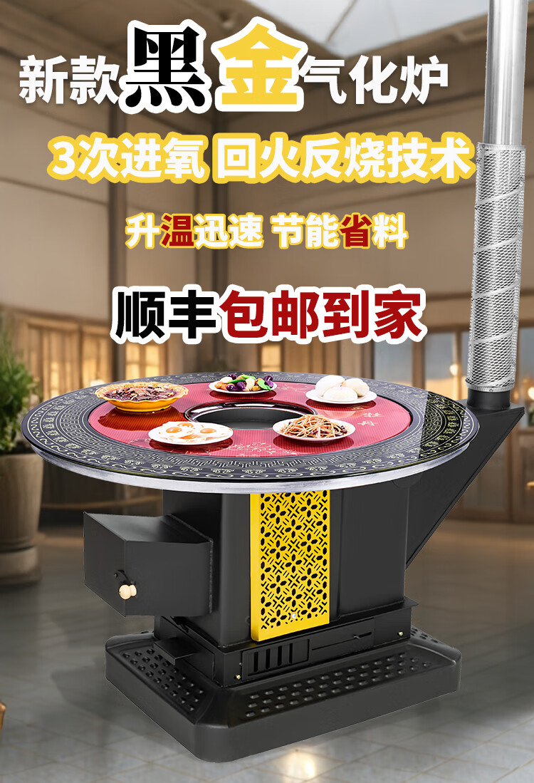 昊燃 【送货上门】加厚气化炉农村家用烤火炉柴煤两用汽化炉节能暖炉 0.8米不锈钢桌面+气化炉