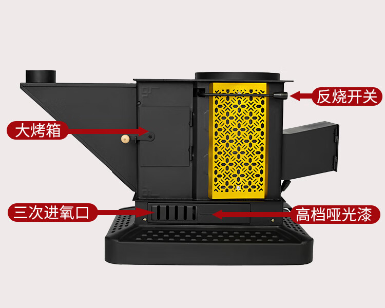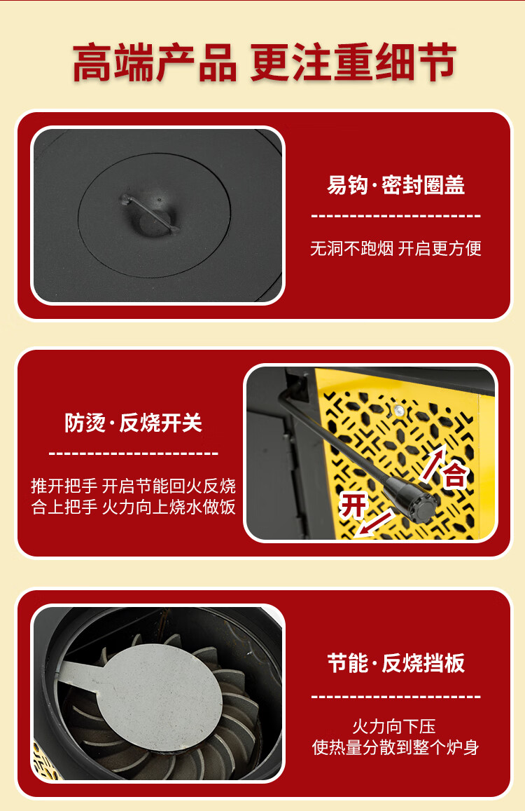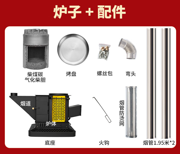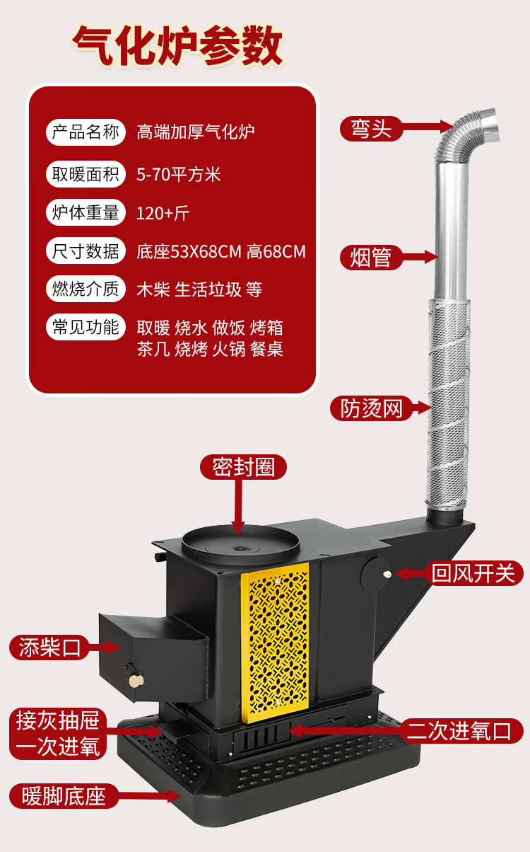 柴火取暖炉气化炉室内无烟农村2024新款柴煤两用炉采暖做饭 单炉(不含烟管)