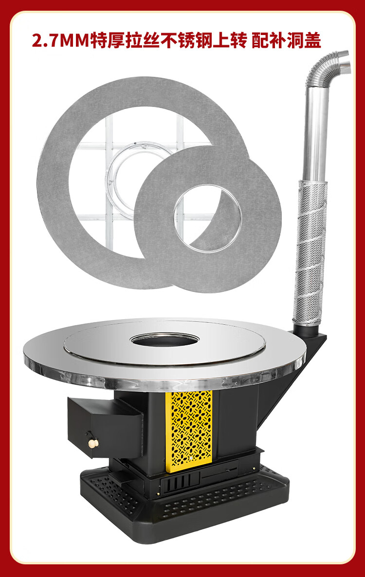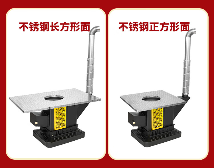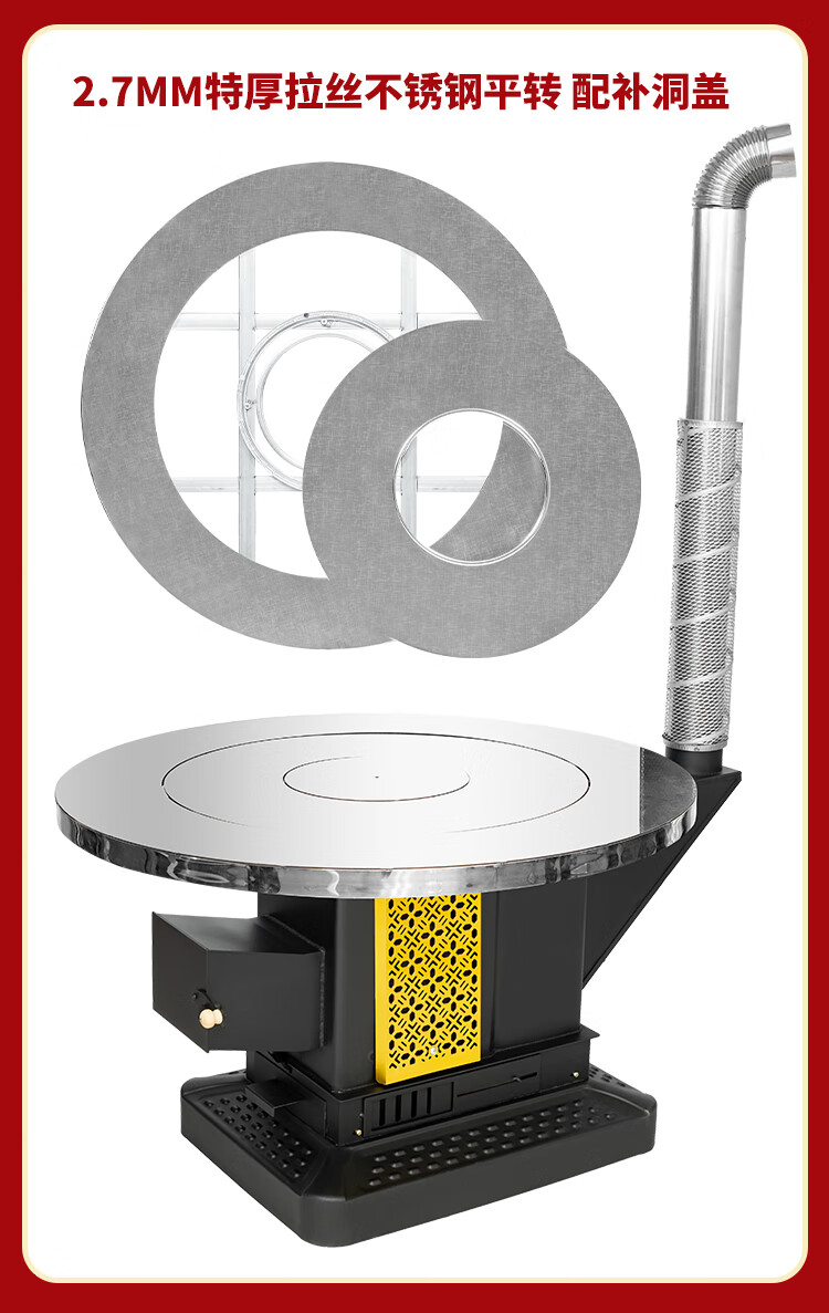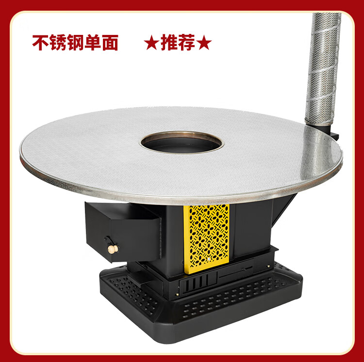 满钵取暖炉柴火灶烤火炉柴煤两用多功能回风炉室内无烟农村家用 0.8米 不锈钢单桌面 煤炉