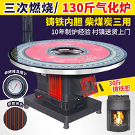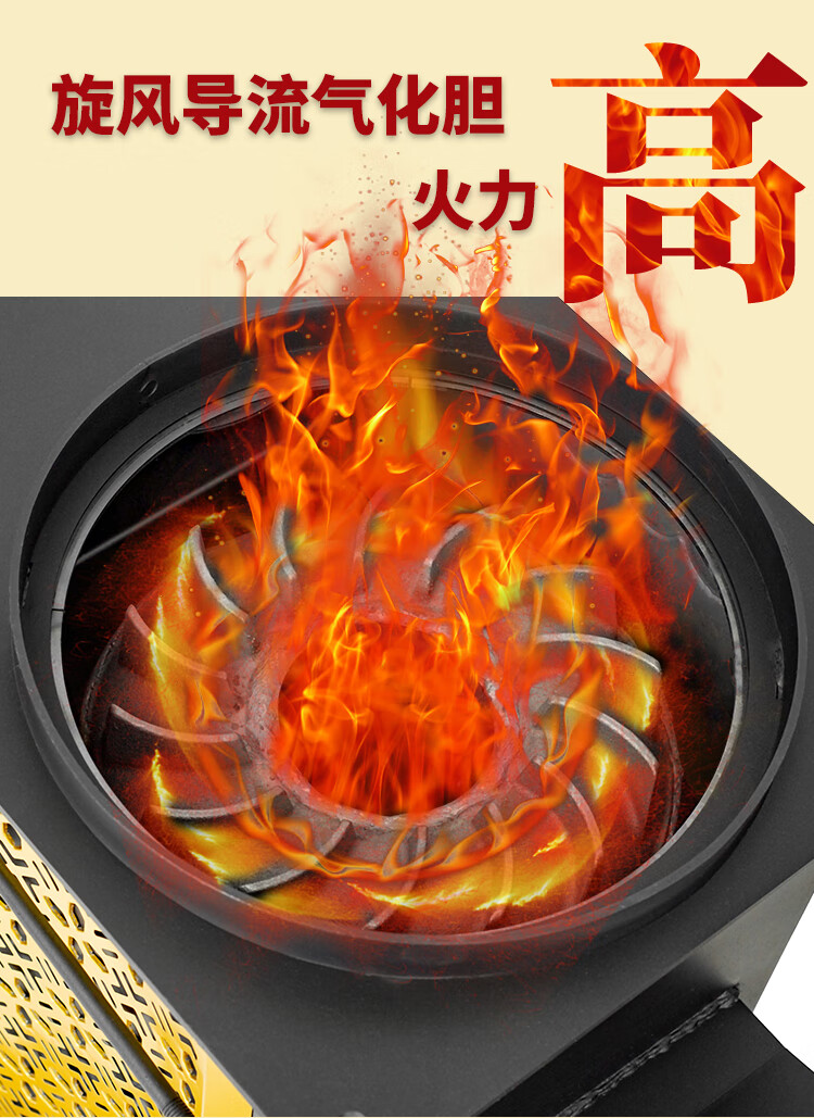 气化柴火灶农村家用烧木柴煤两用加厚铸铁室内无烟冬季取暖炉子 威天气化炉+3米烟管配件
