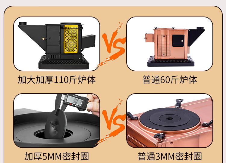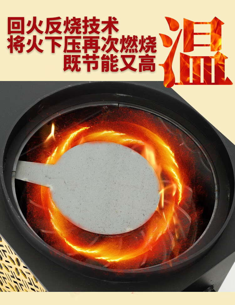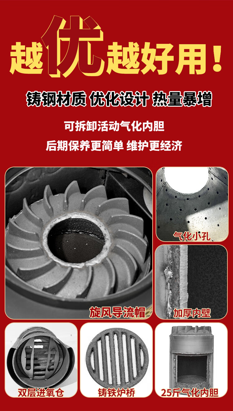 都格(Duge)气化炉烧柴烧煤炭室内柴火炉农村烤火炉子室内无烟取暖炉 110斤特厚炉体