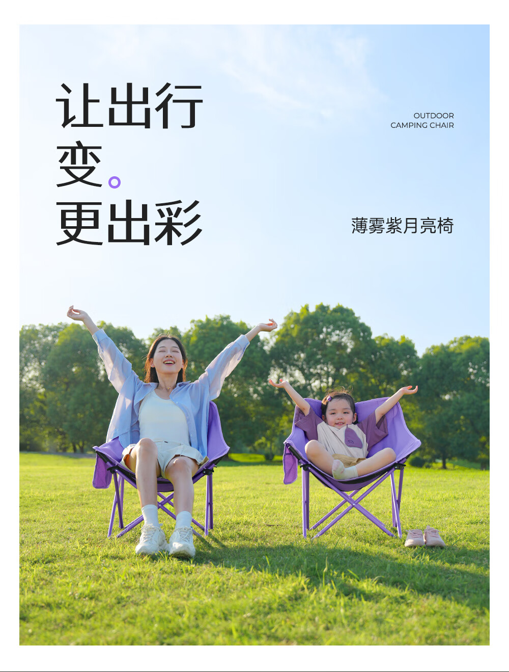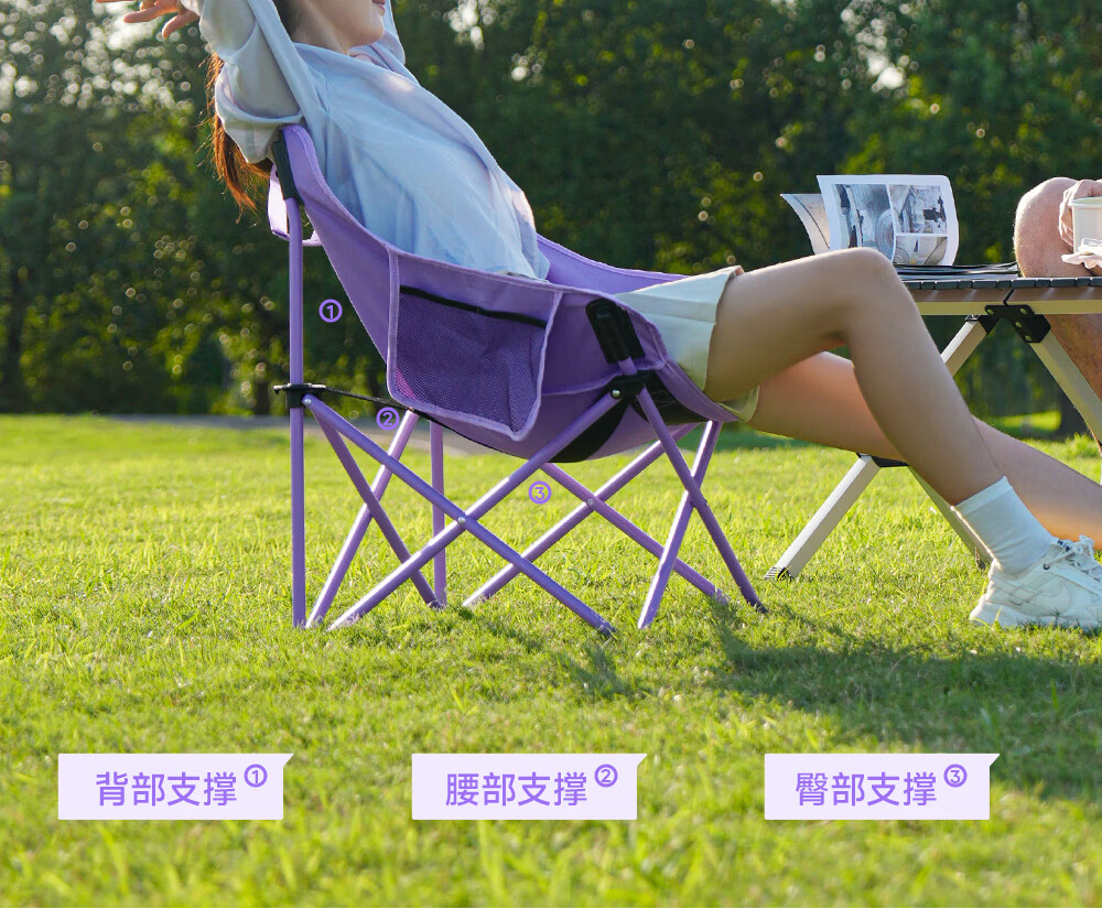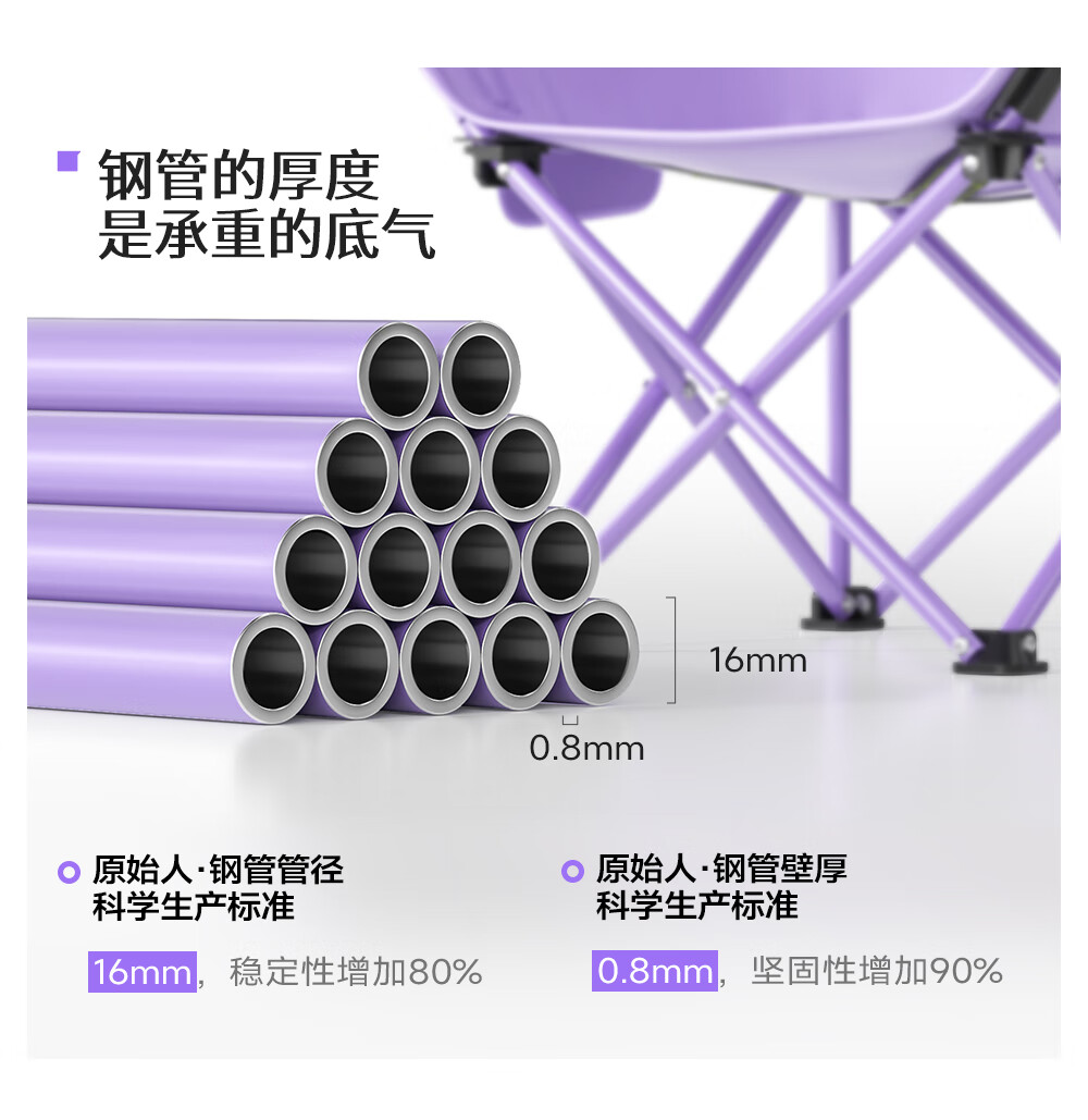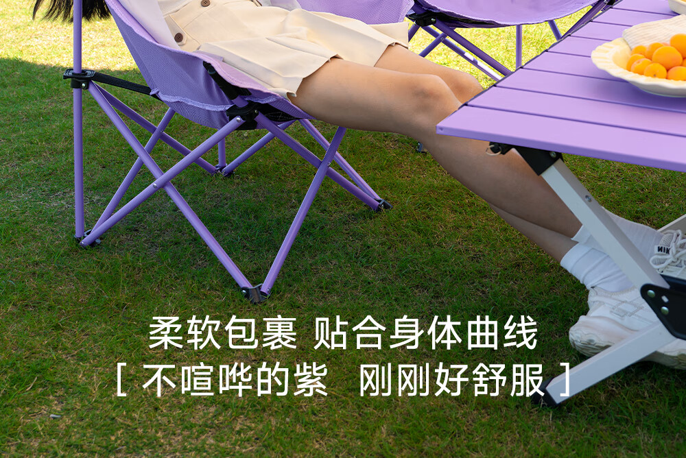 原始人(The Primitive)月亮椅户外折叠椅高承重露营椅子沙滩椅便携式折叠凳休闲野餐钓鱼 薄雾紫经典款*6+120紫色蛋卷桌