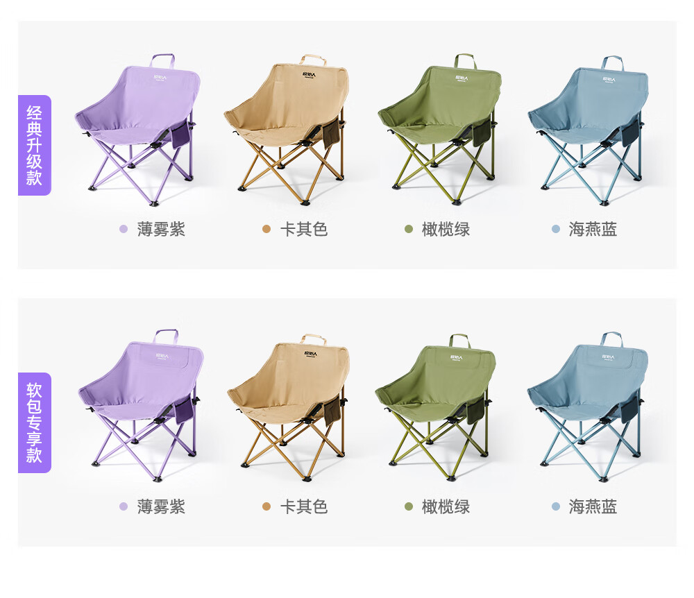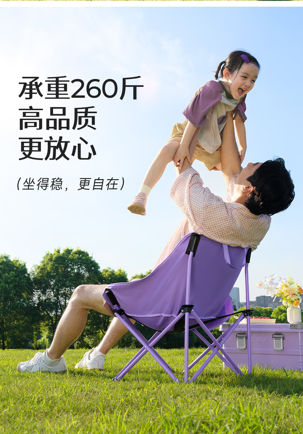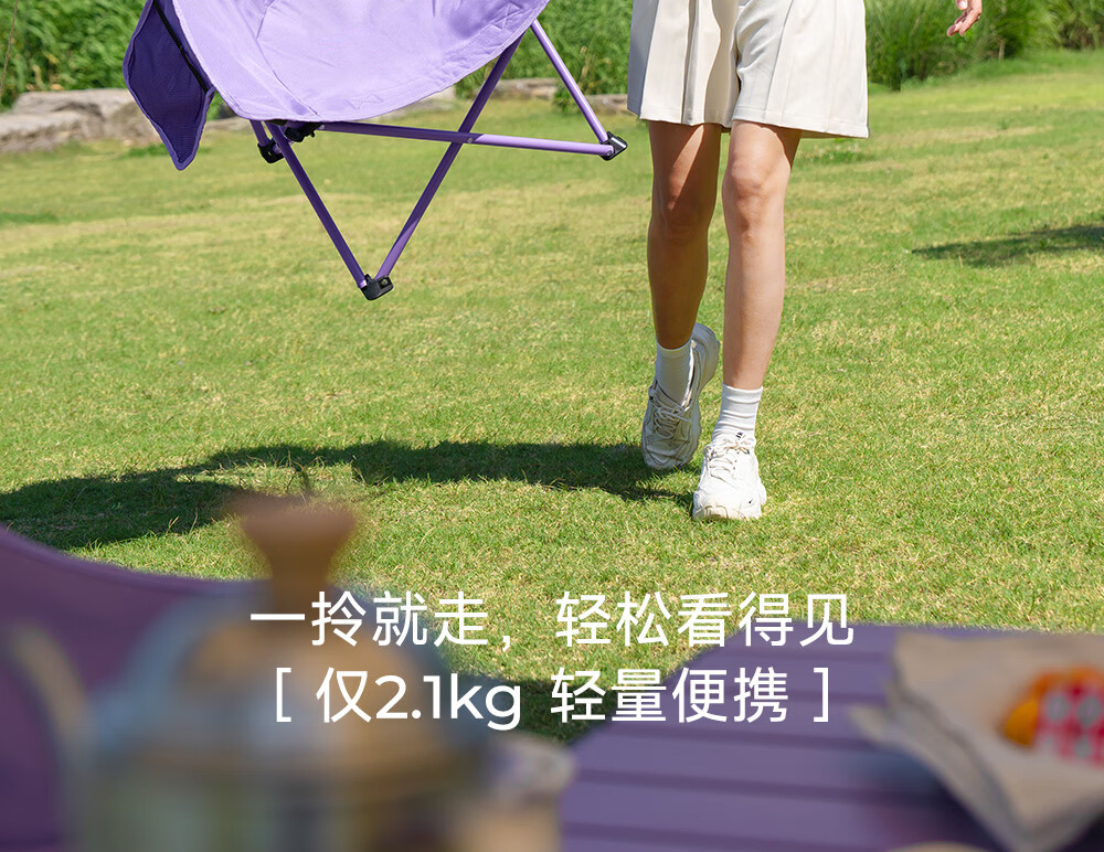 原始人(The Primitive)月亮椅户外折叠椅高承重露营椅子沙滩椅便携式折叠凳休闲野餐钓鱼 薄雾紫经典款*6+120紫色蛋卷桌