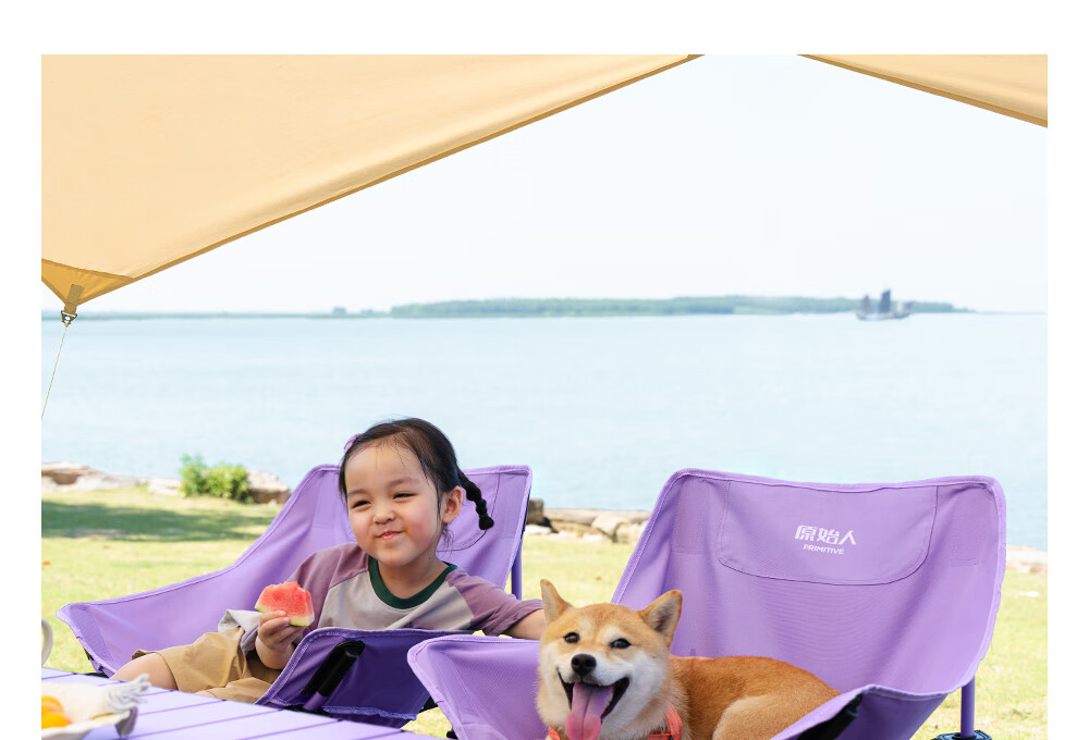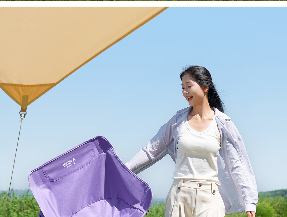 原始人(The Primitive)户外黑胶天幕帐篷露营便携防雨防晒野营沙滩免搭速开野外遮阳棚 20㎡天幕+120紫色蛋卷桌+月亮椅*4