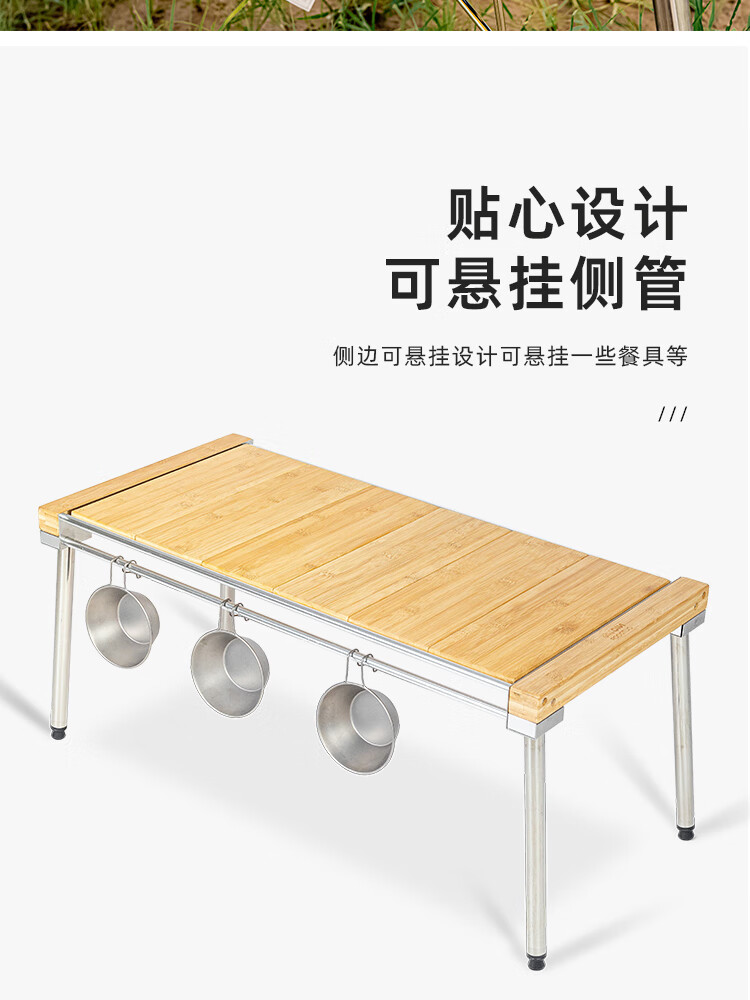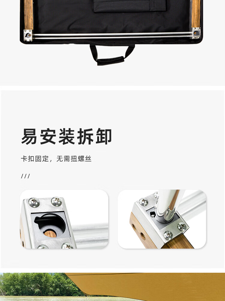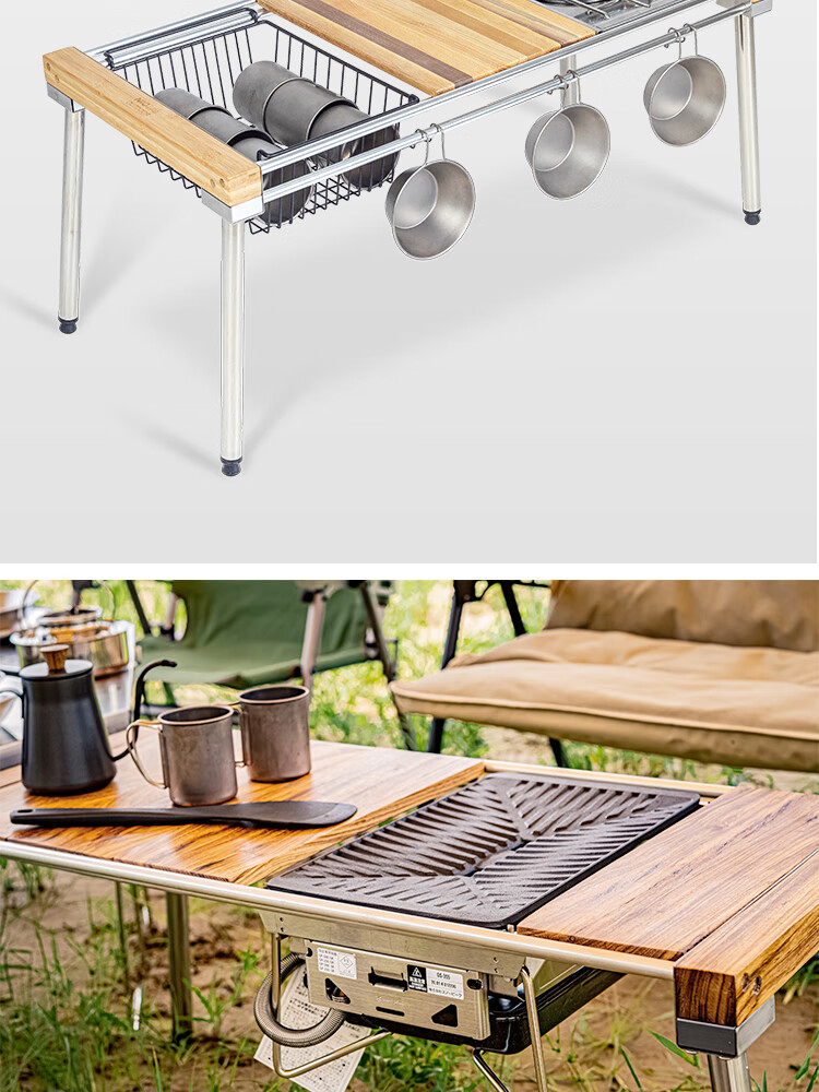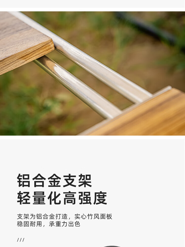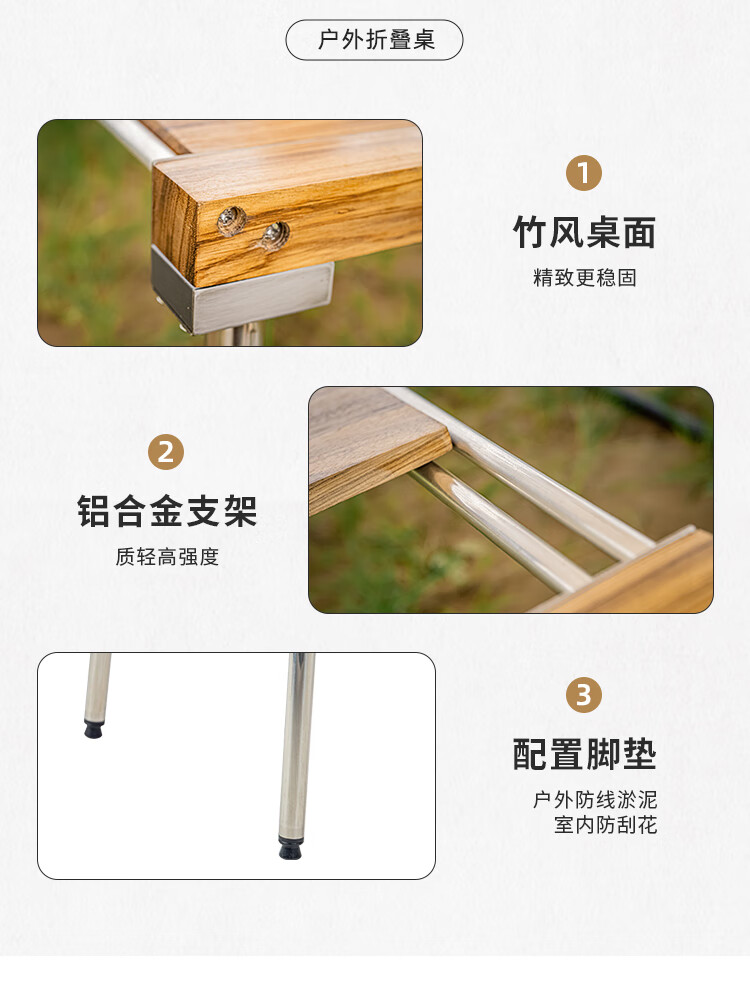 Guide Series户外铝合金折叠桌露营桌便携升降沙滩烧烤桌加宽桌自驾游车载桌 新 加宽金属 木纹黑色