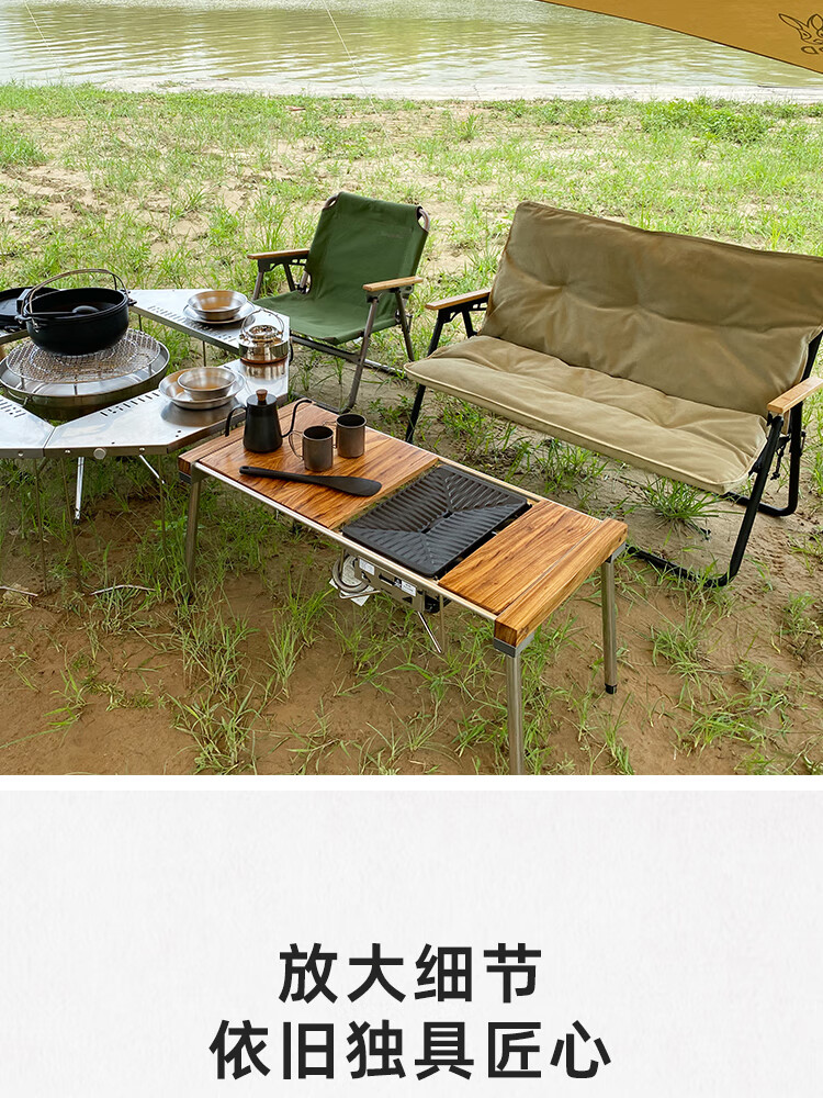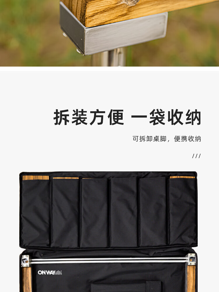 OnwaySports户外露营茶几桌 便携折叠铝合金蛋卷桌 BC黑化IGT野餐桌 OW-8242 复古茶几桌(桌炉另购) 木纹色