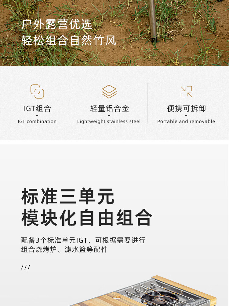 OnwaySports多功能IGT桌椅户外露营用品装备蛋卷折叠野餐战术桌 竹风IGT模块桌
