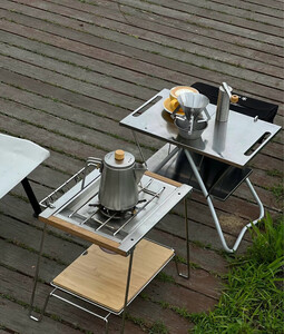 超级实用的小桌子 单人多人个个场景都可以随心搭配当你只想周边简单喝个茶水看看风景带上它就够用了一个小包拎着就走 当多人场景他可以直接放上一单元炉头放在一边烤肉炒菜再也不用在主桌上烤肉喷的到处是油一点点去查了