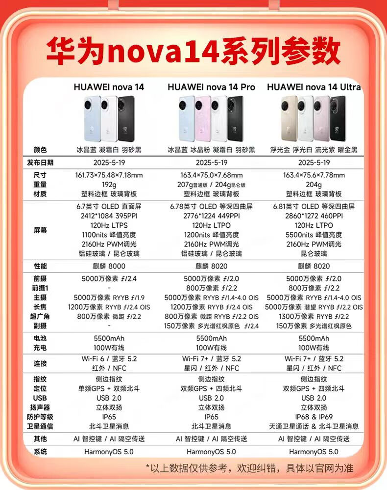 华为nova 14 手机【国家补贴15%+晒单领现金红包30元】 冰晶蓝 512GB 官方标配